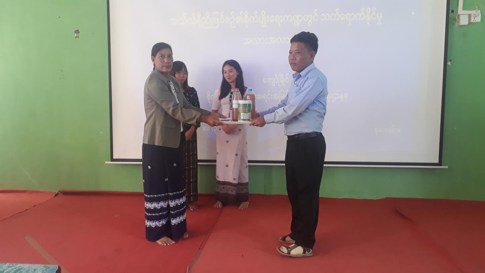 ထို့နောက် တိုင်းမြေအသုံးချရေးဌာနခွဲမှ ဦးစီးအရာရှိ ဒေါ်ဖြူဇာဝင်းက သဘာဝမြေဩဇာအမျိုးမျိုး ပြုလုပ်သုံးစွဲနည်းများနှင့် အကျိုးကျေးဇူးများ ကို အသေးစိတ်ပရိုဂျက်တာဖြင့် ပြသရှင်းလင်းပို့ချပေးခဲ့သည်။