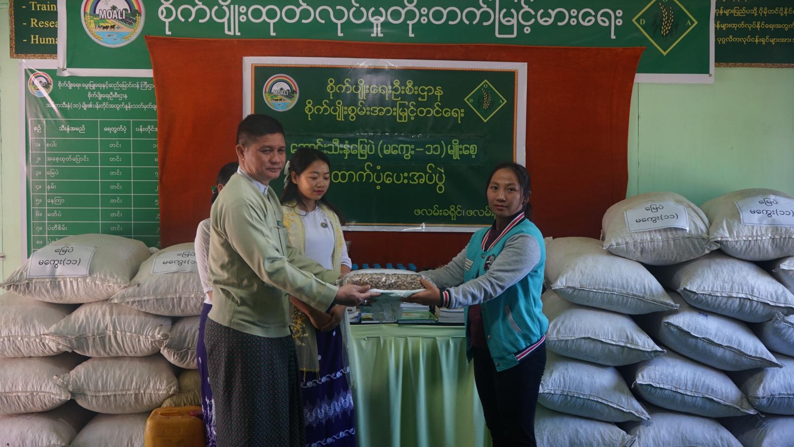 ရှေးဦးစွာ ဖလမ်းခရိုင် စီမံအုပ်ချုပ်ရေးအဖွဲ့ဥက္ကဋ္ဌ ဦးစောထွန်းဝင်းက အမှာစကား ပြောကြားပြီး ခရိုင်စိုက်ပျိုးရေးဦးစီးဌာန၊ ခရိုင်ဦးစီးမှူး ဦးမင်းနိုင်က စိုက်ပျိုးရေးလုပ်ငန်းများနှင့် ပတ်သက်၍ ရှင်းလင်းတင်ပြသည်။ ထို့နောက် ခရိုင်စီမံအုပ်ချုပ်ရေးအဖွဲ့ဥက္ကဋ္ဌ ဦးစောထွန်းဝင်း၊ အဖွဲ့ဝင် (၁) ဒုတိယဗိုလ်မှူးကြီး ဝင်းဇော်လတ်၊ အတွင်းရေးမှူး ဒုတိယရဲမှူးကြီးမိုးနိုင်၊ အဖွဲ့ဝင် ဦးရေးချမ်း၊ မြို့နယ် စီမံအုပ်ချုပ်ရေးအဖွဲ့ဥက္ကဋ္ဌ ဦးကောင်းမြတ်ထွန်းနှင့် အဖွဲ့ဝင်များက ဆောင်းသီးနှံ၊ မြေပဲ (မကွေး-၁၁) မျိုးစေ့များကို တောင်သူ(၂၀)တို့ထံ စပါး(၇)တင်း၊ ပြောင်းဖူး (၂၂၅)kg၊ နေကြာ (၃၃၀)kg၊ မြေပဲ (၃၀)တင်း၊ ထောပတ်ပင် (၂၀၅၄)ပင်၊ လိမ္မော်ပင် (၃၀၁) ပင်၊ မက္ကဒေးမီးယား (၅၀)ပင်၊ ပန်းသစ်တော်ပင် (၂၈)ပင်၊ စိုက်ပျိုးရေးဆိုင်ရာ နည်းပညာပေးစာအုပ်စာစောင်များ၊ သဘာဝဓာတ်မြေဩဇာဖျော်ရည် (Effective Micro-organism) (၂၀)လီတာတို့ကို ထောက်ပံ့ပေးအပ်ခဲ့ကြသည်။