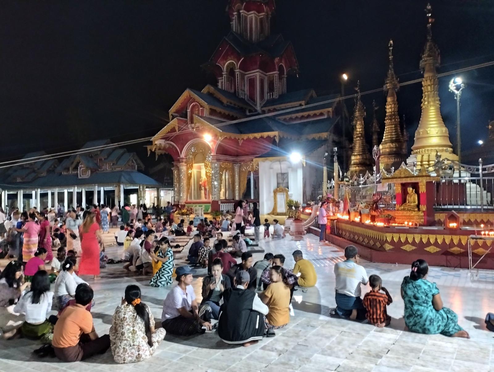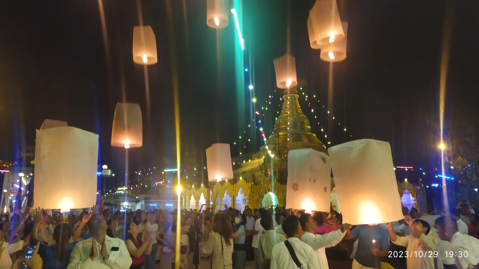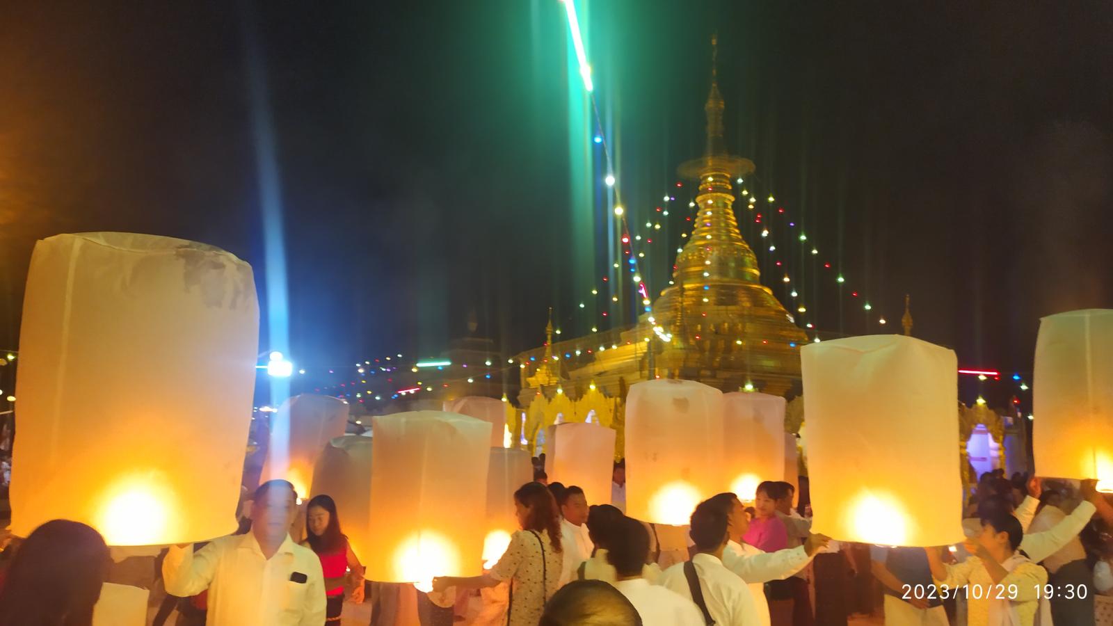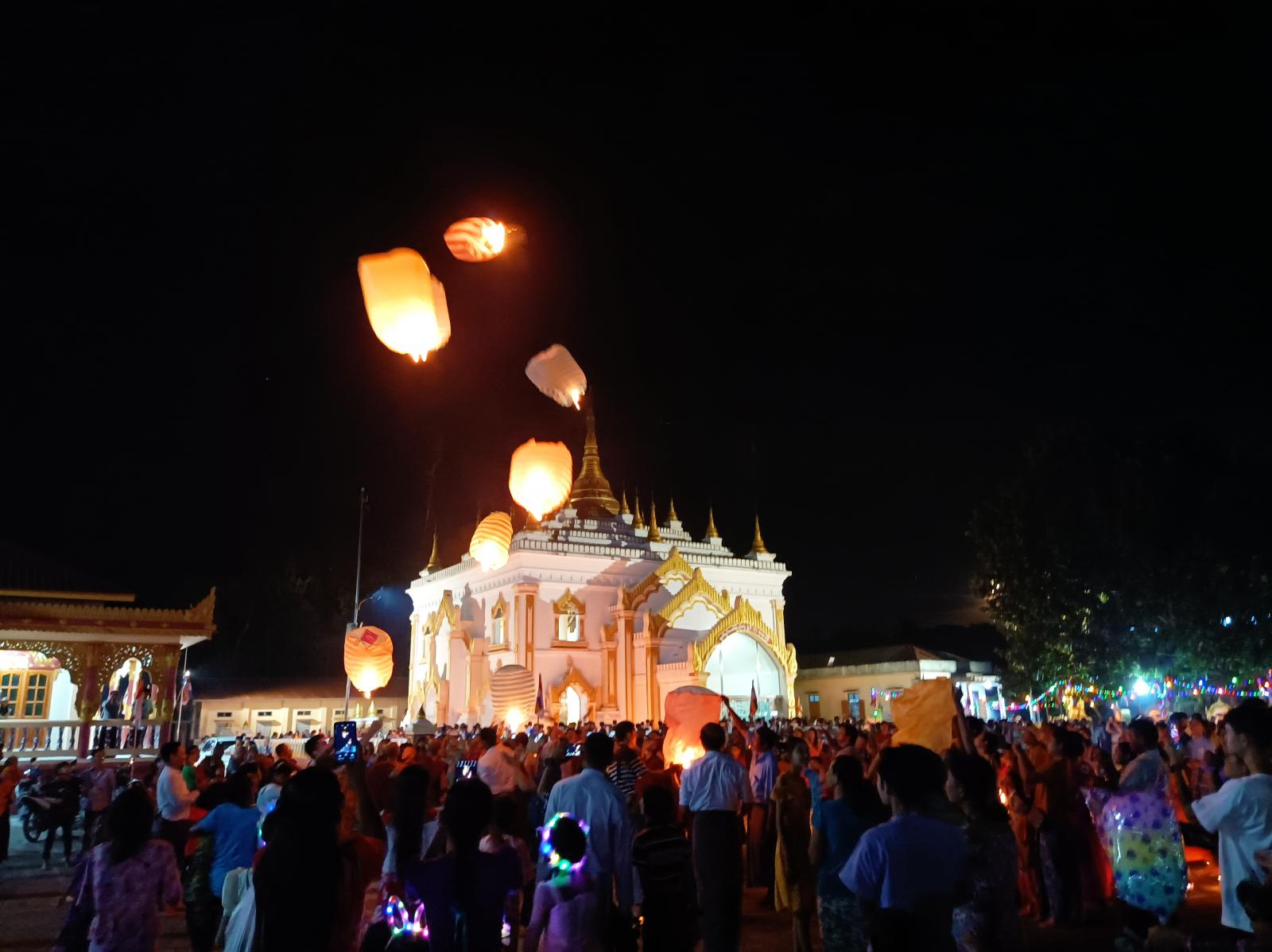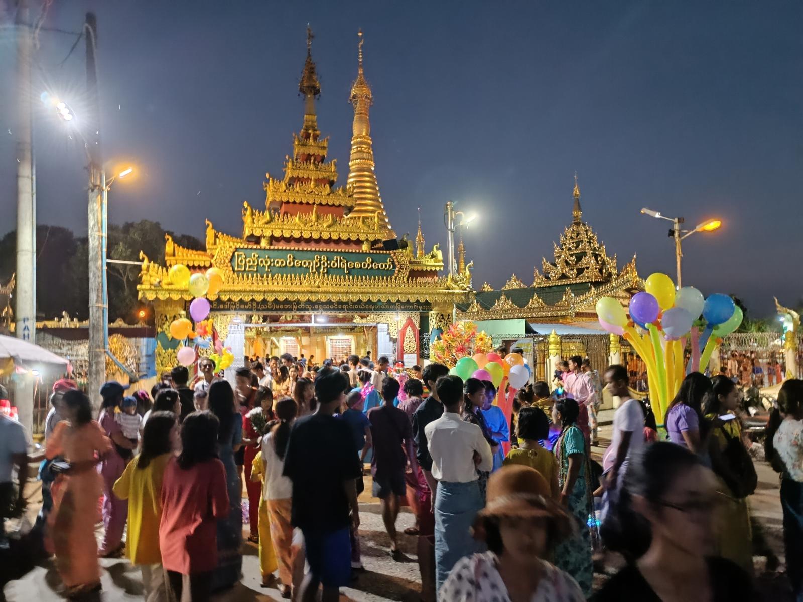 ကော့သောင်းခရိုင်အတွင်းရှိ မြို့နယ်ကျက်သရေဆောင် ပြည်တော်အေးဆုတောင်းပြည့် စေတီတော်မြတ်ကြီးတွင် ဘုရားဖူးပြည်သူများနှင့် စည်ကားလျက်ရှိပြီး နယ်မြေခံတပ်ရင်းမှ စစ်ဗျူဟာမှူးဦးဆောင်သည့် ဌာနဆိုင်ရာများက မီးပုံးပျံလွှတ်တင်ပူဇော်ခဲ့ကြကြောင်း၊ စေတီတော်မြတ်ကြီးတွင် စတုဒိတာ လှူဒါန်းသူများ၊ သန့်ရှင်းရေးပြုလုပ်ကုသိုလ်ယူကြသူများ၊ ဆီမီးပူဇော်ကြသူများဖြင့် စည်ကားလျက်ရှိသည်။