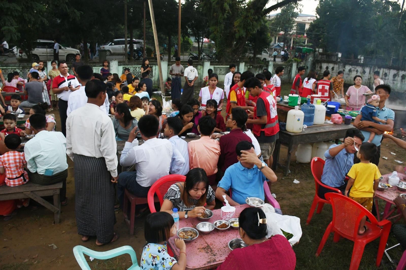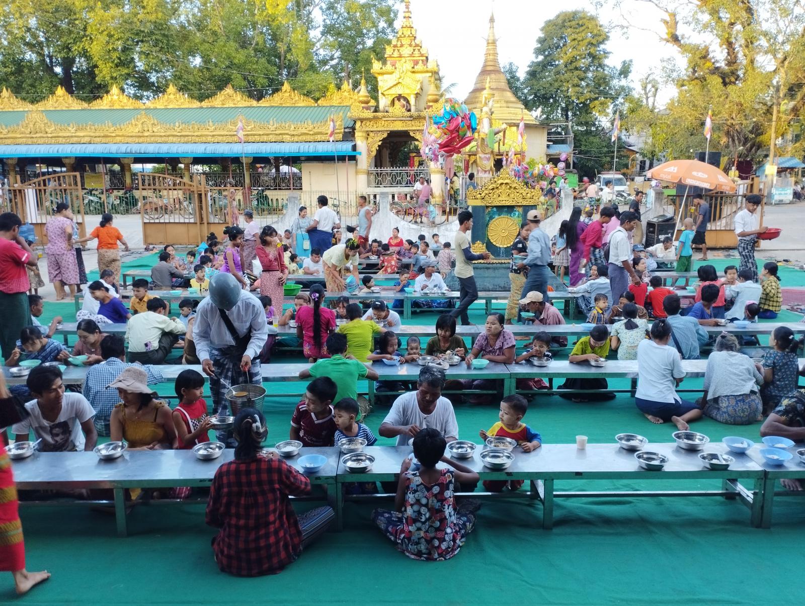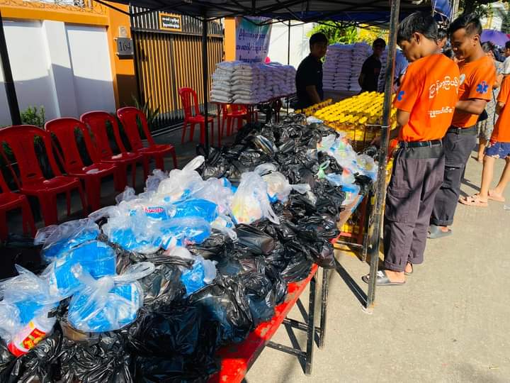 မရမ်းကုန်းမြို့နယ် အမှတ်(၄) ရပ်ကွက်၌ သီတင်းကျွတ်လပြည့် (အဘိဓမ္မာအခါတော်နေ့) နံနက်ပိုင်းတွင် ရပ်ကွက်တွင်း စတုဒိသာကျွေးမွေးသူများ၊ လှူဒါန်းသူများဖြင့် စည်ကားလျက်ရှိပြီး ရပ်ကွက်တွင်းအလှူရှင်တစ်ဦးဖြစ်သည့် ဦးစိုးဝင်းထက်နှင့် ဒေါ်မာလာအေးမိသားစုတို့မှ ရပ်ကွက် အတွင်းရှိ ပြည်သူ (၈၀၀) အား ဆန်၊ ဆီ၊ ဆေး၊ ဆားတို့ကို လှူဒါန်းခဲ့ကြောင်း သိရသည်။