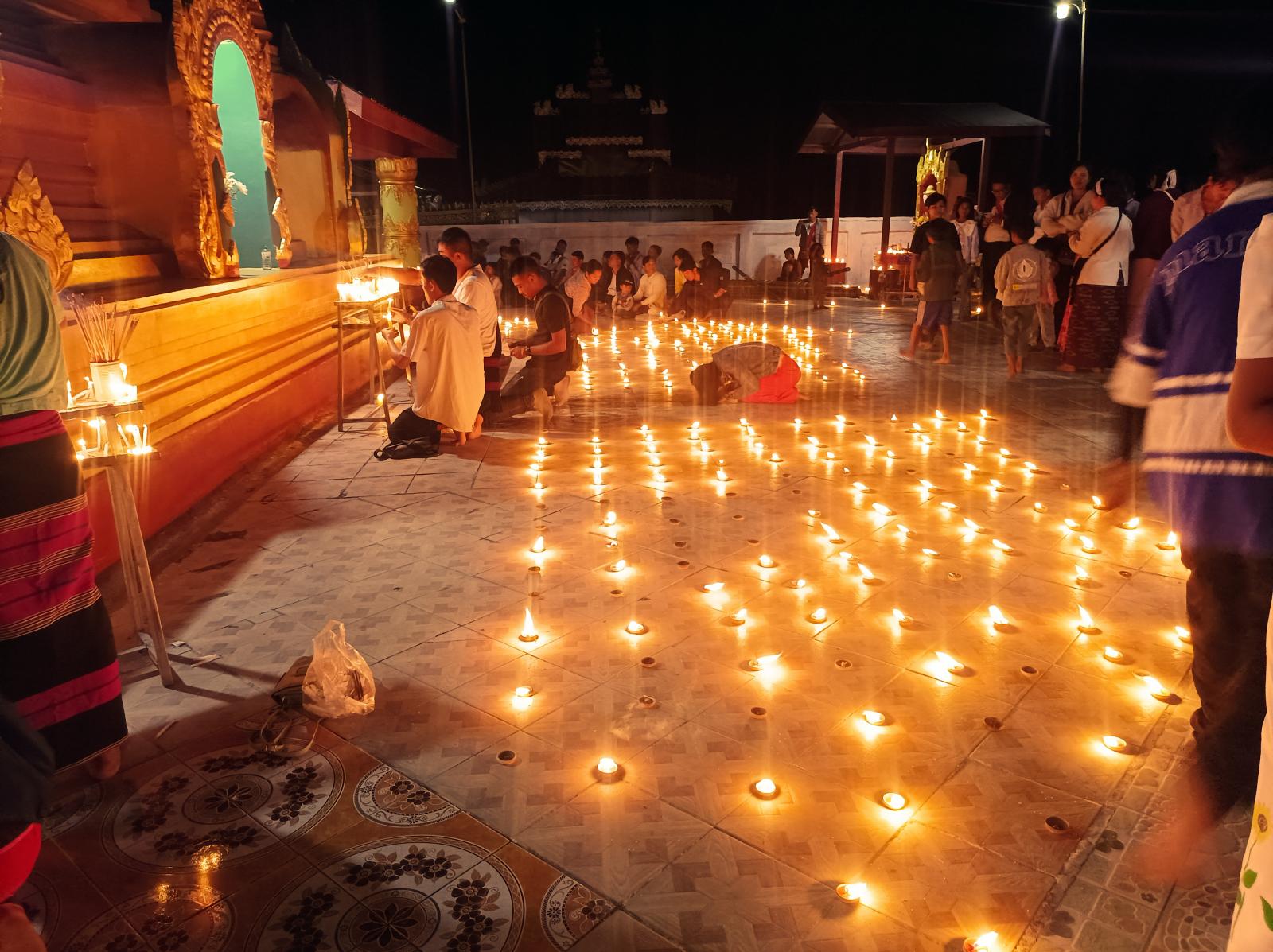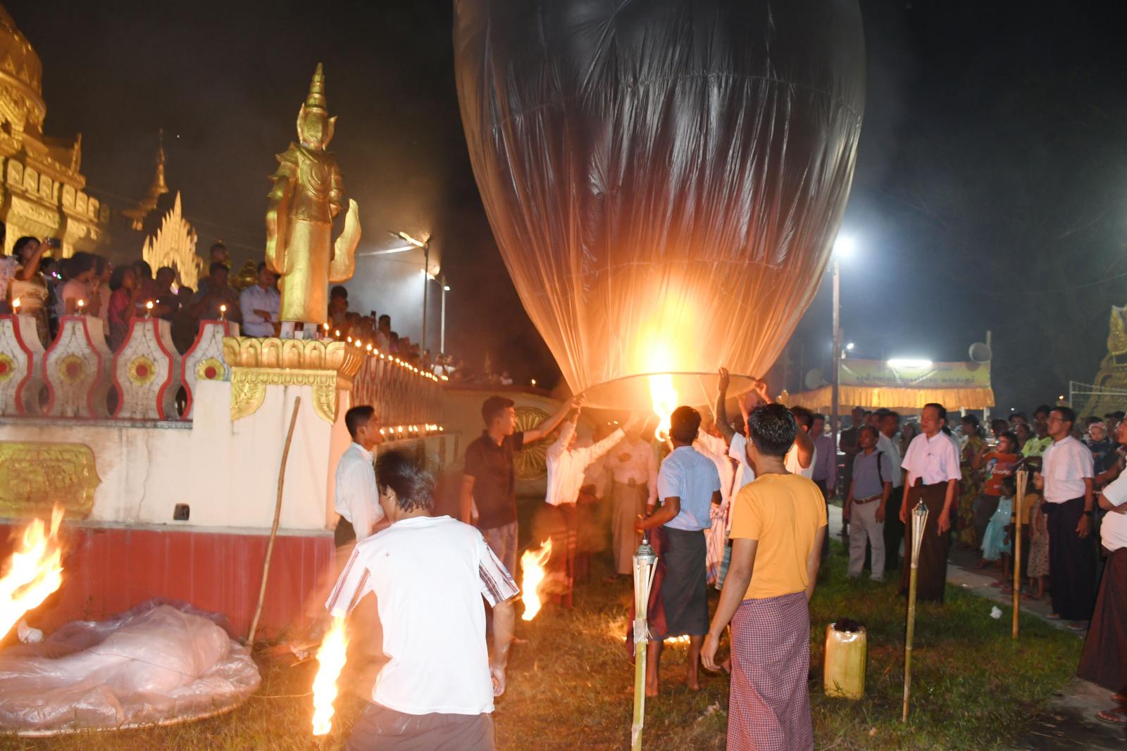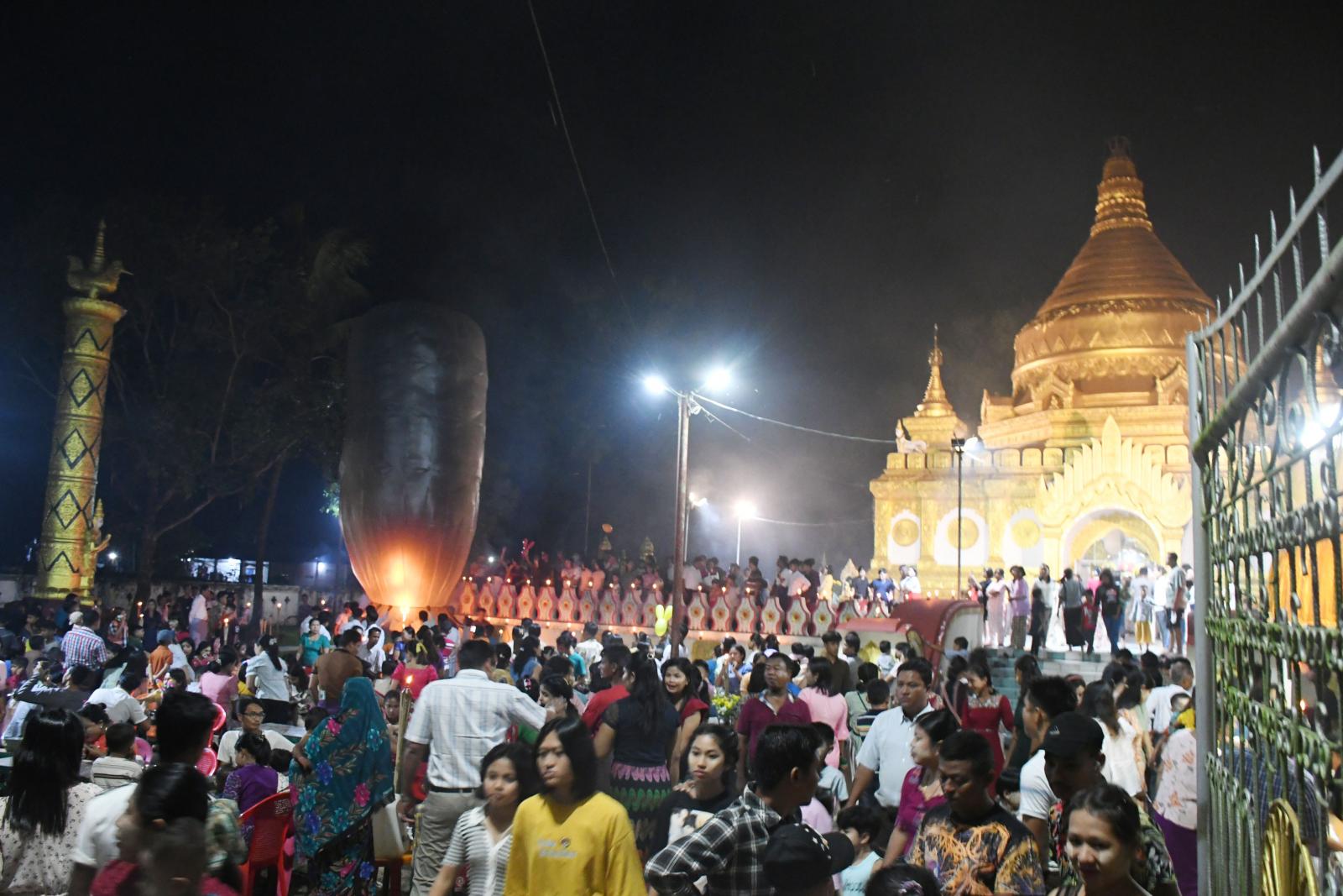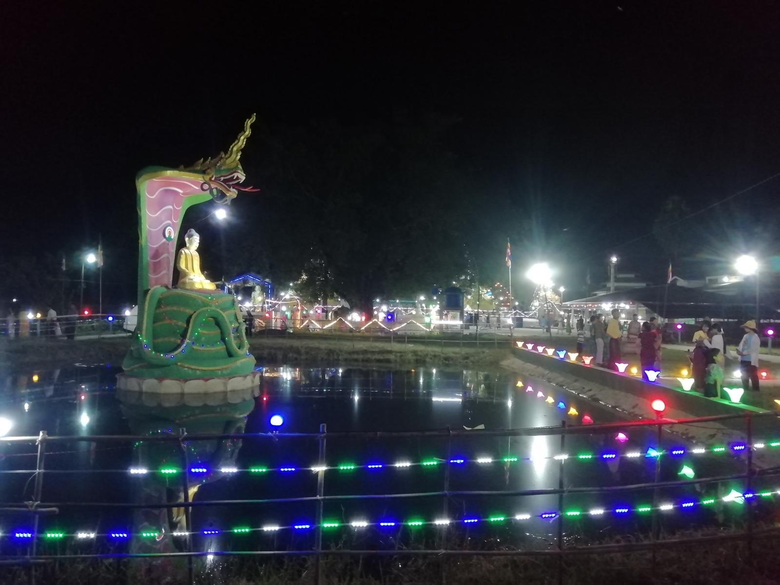 အလားတူ ညပိုင်းတွင်လည်း မြတ်စွာဘုရားရှင်အား ရည်မှန်း၍ ကောင်းမှုလုံ စေတီတော်မြတ်ကြီး၏ ရင်ပြင်တော်တွင် ဆီမီး ၁၀၀၀ ထွန်းညှိပူဇော်ခြင်း၊ စေတီတော်မြတ်ခြေရင်းရှိ မလိခမြစ်အတွင်း ဆီမီးကြာခွက်မျှောပူဇော်ခြင်းတို့ကို မြို့နယ်ဌာနဆိုင်ရာများနှင့် ရပ်ဝေးရပ်နီးမှ ဘုရားဖူးပြည်သူများက စုပေါင်းကုသိုလ်ယူခဲ့ကြကြောင်း သိရသည်။