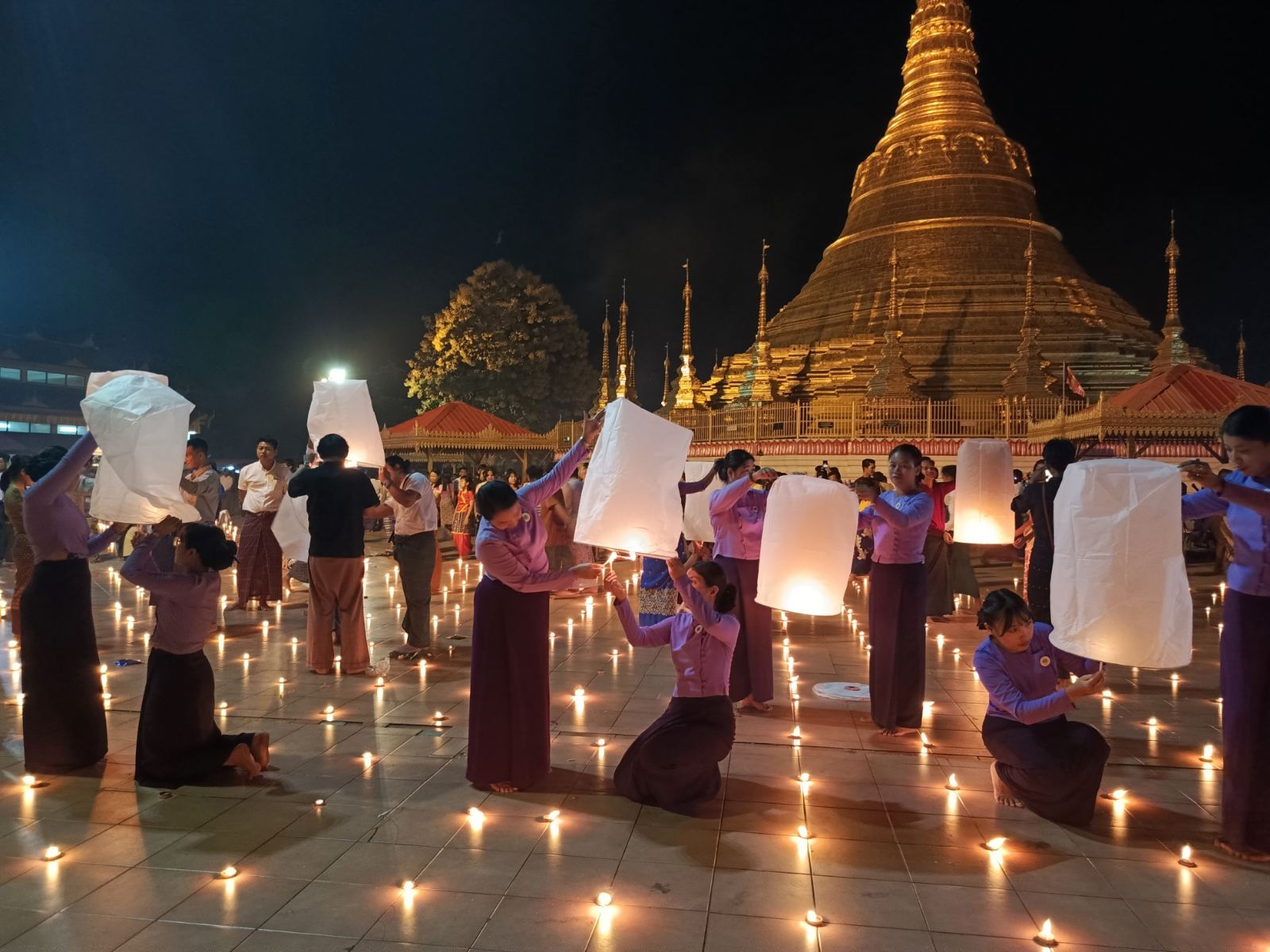 မြန်မာသက္ကရာဇ် ၁၃၈၅ ခုနှစ် သီတင်းကျွတ်လပြည့်နေ့သည် ဗုဒ္ဓဘာသာဝင် မြန်မာလူမျိုးတို့၏ နေ့ထူးနေ့မြတ်ဖြစ်သည်နှင့်အညီ လပြည့်နေ့နံနက်ပိုင်းအချိန်မှစတင်ကာ ရွှေတိဂုံစေတီတော်မြတ်ကြီး အပါအဝင် ရန်ကုန်တိုင်းဒေသကြီးအတွင်းရှိ ဘုရားစေတီပုထိုးများ၌ ဥပုသ်သီတင်းသီလ ဆောက်တည်ကြသူများ၊ ဆွမ်း၊ ပန်း၊ ရေချမ်း၊ သစ်သီး၊ ဆီမီး၊ အမွှေးနံ့သာများ ဆက်ကပ်လှူဒါန်း၍ ကုသိုလ်ကောင်းမှုပြုသူများ၊ တရားဘာဝနာပွားများ ကျင့်ကြံအားထုတ်သူများ၊ စတုဒိသာ ကျွေးမွေးလှူဒါန်းကြသူများနှင့် ရန်ကုန်မြို့အပါအဝင် အနယ်နယ်အရပ်ရပ်မှ ဘုရားဖူးလာပြည်သူများဖြင့် အထူးပင်စည်ကားလျက်ရှိပြီး ရွှေတိဂုံစေတီတော်မြတ်ကြီး အပါအဝင် ရန်ကုန်တိုင်းဒေသကြီးအတွင်းရှိ ဘုရားစေတီပုထိုးများအား အများပြည်သူဖူးမြော်ကြည်ညို နိုင်ရေးအတွက် နံနက်(၅)နာရီမှ ည(၈)နာရီခွဲအချိန်အထိ ဖွင့်လှစ်ပေးထားပြီး စနေ၊ တနင်္ဂနွေနှင့် နေ့ထူးနေ့မြတ် ကျန်အစိုးရရုံးပိတ်ရက်များ၌လည်း အဆိုပါအချိန်အတိုင်း ဖွင့်လှစ်ပေးထားရာ မည်သူမဆို စိတ်အေးချမ်းသာစွာ လာရောက်ဖူးမြော်၍ ကုသိုလ်ယူနိုင်ကြောင်း သတင်းရရှိပါသည်။