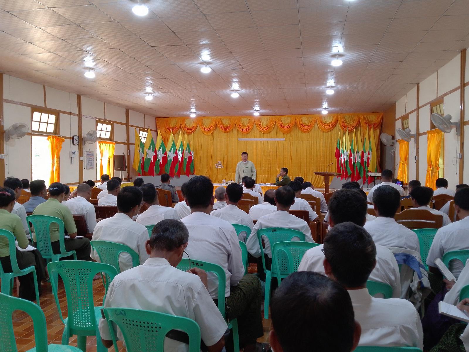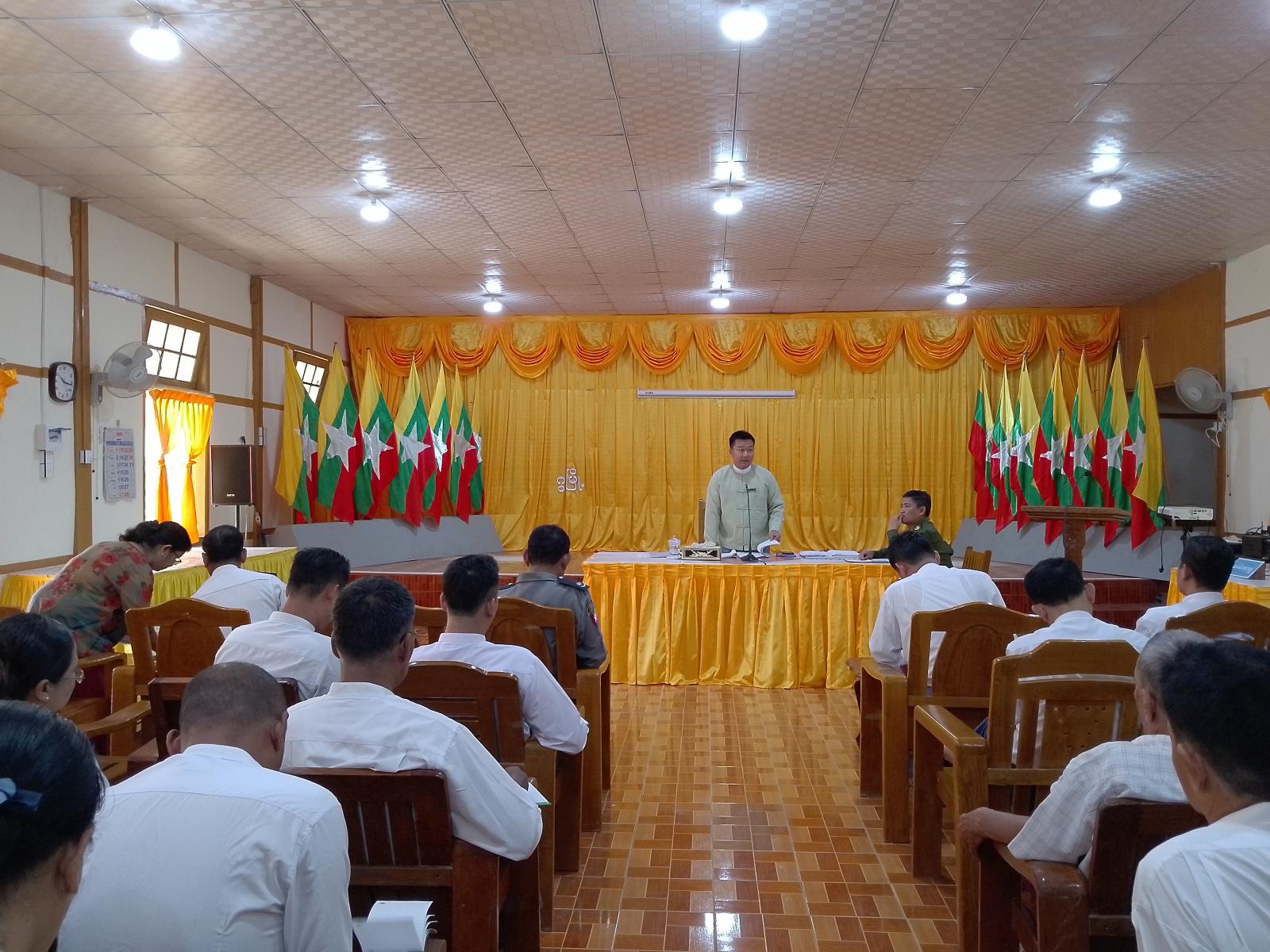 အစည်းအဝေးတွင် မြို့နယ်စီမံအုပ်ချုပ်ရေးအဖွဲ့ဥက္ကဋ္ဌဦးဇာနည်ကျော်က နိုဝင်ဘာလ(၁၅) ရက်နေ့တွင် ကျင်းပမည့် (၂၅)ကြိမ်မြောက် ဝန်ထမ်းပေါင်းစုံ ဘုံကထိန် အောင်မြင်စွာ ဖြစ်မြောက်ရေးအတွက် ဖွဲ့စည်းထားသည့် ကော်မတီများအလိုက် ဆောင်ရွက်ရမည့်လုပ်ငန်းများနှင့် အလှူငွေများ ထည့်ဝင်လှူဒါန်းကြရေး၊ မြို့နယ်တည်ဆောက်ရေး လုပ်ငန်းစီစစ်ရေးကော်မတီကို ခရိုင်စီမံအုပ်ချုပ်ရေးအဖွဲ့၏ ညွှန်ကြားချက်အရ ဖွဲ့စည်းထားရှိရာ ကျပ်သန်း(၅၀)အောက် ပြည်ထောင်စု၊ ပြည်နယ် ငွေလုံးငွေရင်းနှင့် ဆောင်ရွက်သည့် လုပ်ငန်းများနှင့်ပတ်သက်၍ လုပ်ငန်းတာဝန်များအား ဆောင်ရွက်နိုင်ရေး၊ ရပ်ကွက်/ကျေးရွာအုပ်ချုပ်ရေးမှူးများ အနေဖြင့် ကျေးလက်နေ ပြည်သူများနှင့် တိုင်းရင်းသားပြည်သူများအား စာတတ်မြောက်ရေး အကောင် အထည်ဖော် ဆောင်ရွက်ရာတွင် ပညာရေးဌာနမှ စီမံချက်ရေးဆွဲထားသည့်အတိုင်း ကျေးရွာများတွင် စာမတတ်သည့်သက်ကြီးပိုင်းများ၏ စာရင်းအား ပြုစုထားရှိရေးတို့ကို ဆွေးနွေးပြောကြားခဲ့သည်။ ဆက်လက်၍ မြို့နယ်စီမံအုပ်ချုပ်ရေးအဖွဲ့၊ အဖွဲ့ဝင်(၁) ဗိုလ်မှူးသန့်ဇင်အောင်နှင့် ရဲမှူး ခင်မောင်ထွန်းတို့က မြို့၊ရွာ လုံခြုံရေး အကြောင်း ဆွေးနွေးပြောကြား ခဲ့သည်။