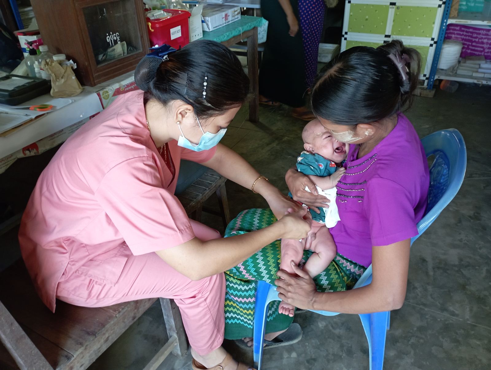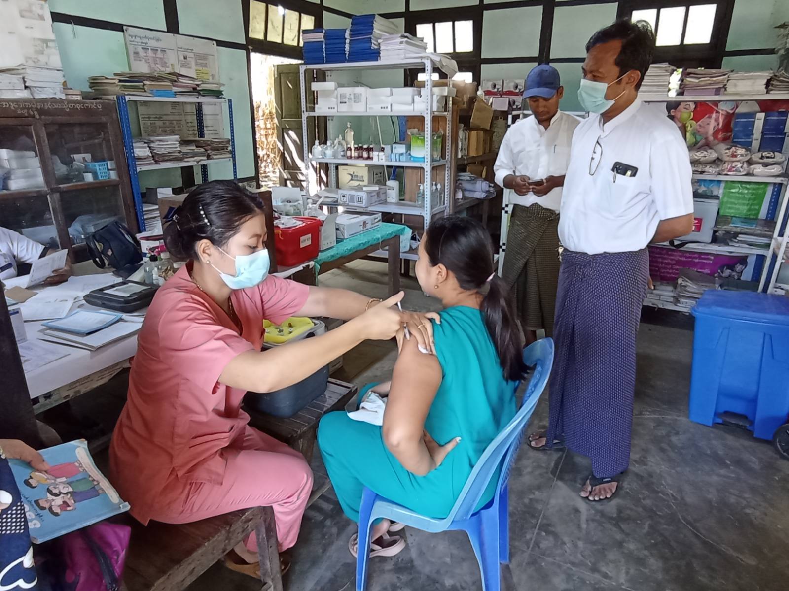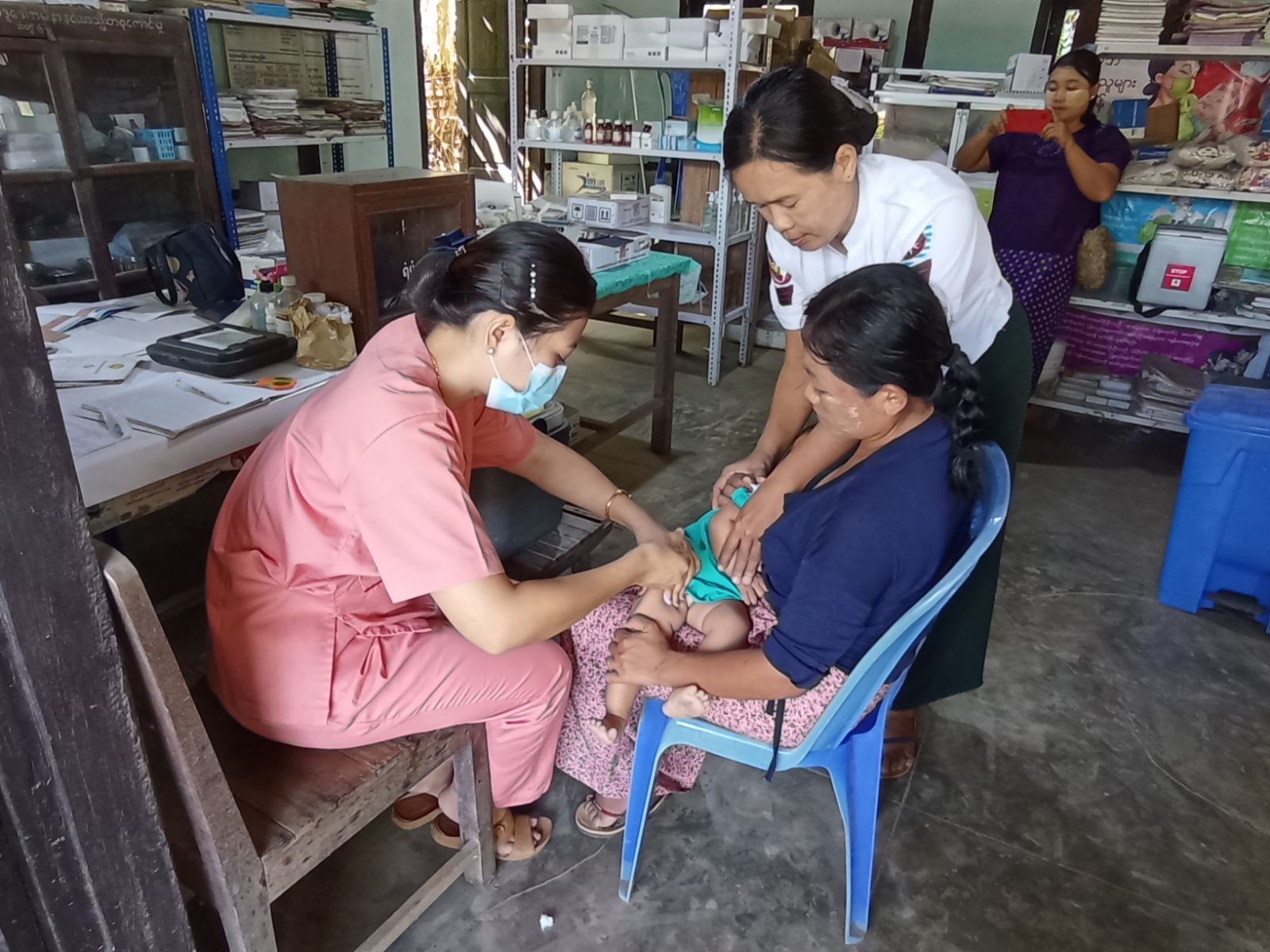 ရခိုင်ပြည်နယ် ၊ ဂွမြို့၌ အသက်(၂)နှစ်အောက် ကလေးများနှင့် ကိုယ်ဝန်ဆောင် မိခင်များအား ပုံမှန်ကာကွယ်ဆေး ထိုးနှံတိုက်ကျွေးခြင်းကို ယနေ့ နံနက်ပိုင်းက ကင်းရုံးရပ်ကွက်ရှိ မိခင်နှင့် ကလေးစောင့်ရှောက်ရေးဌာနတွင် ကျန်းမာရေးဝန်ထမ်းများက ထိုးနှံပေးလျက်ရှိကြသည်။