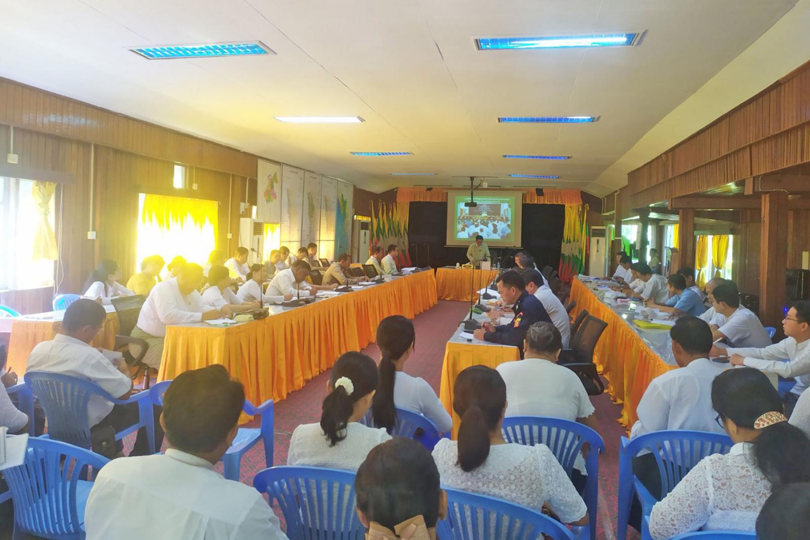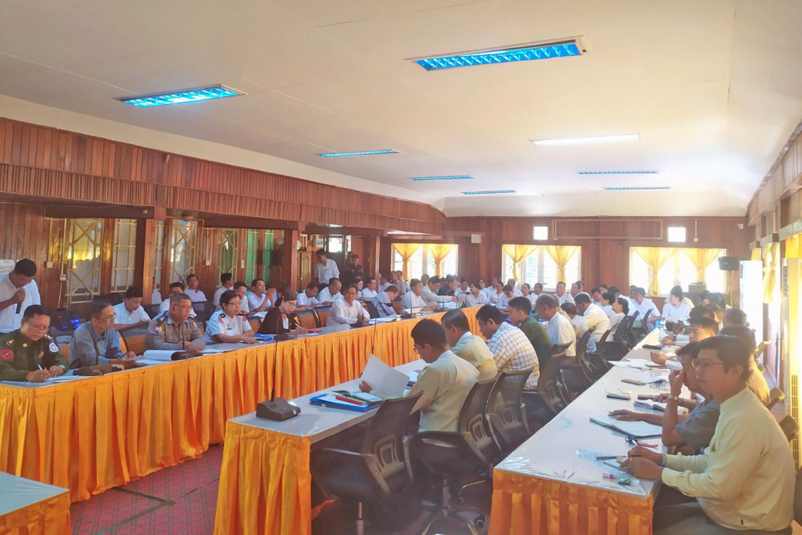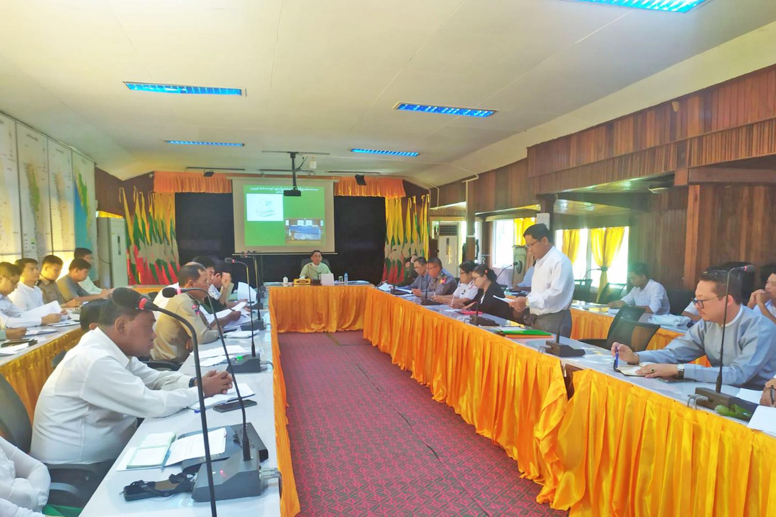 အစည်းအဝေးတွင် ခရိုင်စီမံအုပ်ချုပ်ရေးအဖွဲ့ဥက္ကဋ္ဌ ဦးမျိုးချစ်က (၄၄)ကြိမ်မြောက်ဝန်ထမ်းပေါင်းစုံ စုပေါင်းမဟာဘုံကထိန် အောင်မြင်စွာဖြစ်မြောက်ရေးအတွက် ဖွဲ့စည်းထားသည့် ကော်မတီများအလိုက် ဆောင်ရွက်ရမည့် လုပ်ငန်းများအား သက်ဆိုင်ရာကော်မတီအလိုက် လိုအပ်ချက်များတင်ပြဆွေးနွေးပေးကြရန်နှင့် ဆောင်းဦးပွဲတော် ဖြစ်မြောက်ရေးအတွက် ဖွဲ့စည်းထားသည့် ကော်မတီများအလိုက်ဆောင်ရွက်ရမည့် လုပ်ငန်းများအား သက်ဆိုင်ရာ ကော်မတီအလိုက် လိုအပ်ချက်များ တင်ပြကြရန် ဆွေးနွေးပြောကြားခဲ့သည်။ ၎င်းနောက် ဝန်ထမ်းပေါင်းစုံ စုပေါင်းမဟာဘုံကထိန် ကျင်းပရေးလုပ်ငန်းကော်မတီများနှင့် ဆောင်းဦးပွဲတော်ကျင်းပရေးလုပ်ငန်း ကော်မတီများက အသီးသီးဆွေးနွေးတင်ပြကြရာ ခရိုင်စီမံအုပ်ချုပ်ရေးအဖွဲ့ ဥက္ကဋ္ဌက လိုအပ်သည်များ ပေါင်းစပ် ညှိနှိုင်းပေးခဲ့ကြောင်းသိရသည်။
