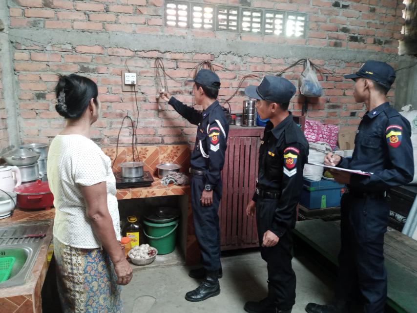 ထိုသို့ဆောင်ရွက်ရာတွင် မြို့နယ်မီးသတ်စခန်းမှ တပ်ကြပ်ကြီးဇော်အောင်နှင့် တပ်ဖွဲ့၀င်များက အရှေ့မြောက်ရပ်ကွက်အတွင်းရှိ မိဘပြည်သူများအနေဖြင့် မီးဘေးအန္တရာယ်ကင်းဝေးစေရေးနှင့် မီးလောင်ကျွမ်းမှုမဖြစ်ပေါ်စေရေးတို့အတွက် မီးသတ်ဦးစီးဌာနမှထုတ်ပြန်ထားသော မီးဘေးလုံခြုံရေးဆိုင်ရာ ညွှန်ကြားချက်များဖြစ်သည့် မီးချိတ်၊ မီးကပ်၊ သဲအိတ်နှင့် မီးသတ် ဆေးဘူးစသော မီးဘေးကာကွယ်ရေးပစ္စည်းများ အသင့်ထားရှိရေး၊ လောင်စာဆီများသို လှောင်ခြင်းမပြုရန်၊ တပ်ဆင်ထားသော ဟောင်းနွမ်းလျှပ်စစ်ဝါယာကြိုးများနှင့် ပျက်စီးနေသော လျှပ်စစ်ပစ္စည်းများ အသုံးမပြုကြရန်၊ မီးသွေးမီးဖိုဖြင့် ထမင်း၊ ဟင်းချက်ပြုတ်ပြီးပါက မီးကြွင်းမီးကျန်များအား စနစ်တကျ မီးငြှိမ်းသတ်ကြရန်စသည့် မီးဘေးအန္တရာယ် မဖြစ်ပေါ်စေ ရေးနှင့်ကြိုတင်ကာကွယ်ရေးအတွက် ဆောင်ရန်/ရှောင်ရန်အချက်များအား ကွင်းဆင်းစစ်ဆေးအသိပညာပေးဟောပြောခဲ့ကြောင်း သိရသည်။