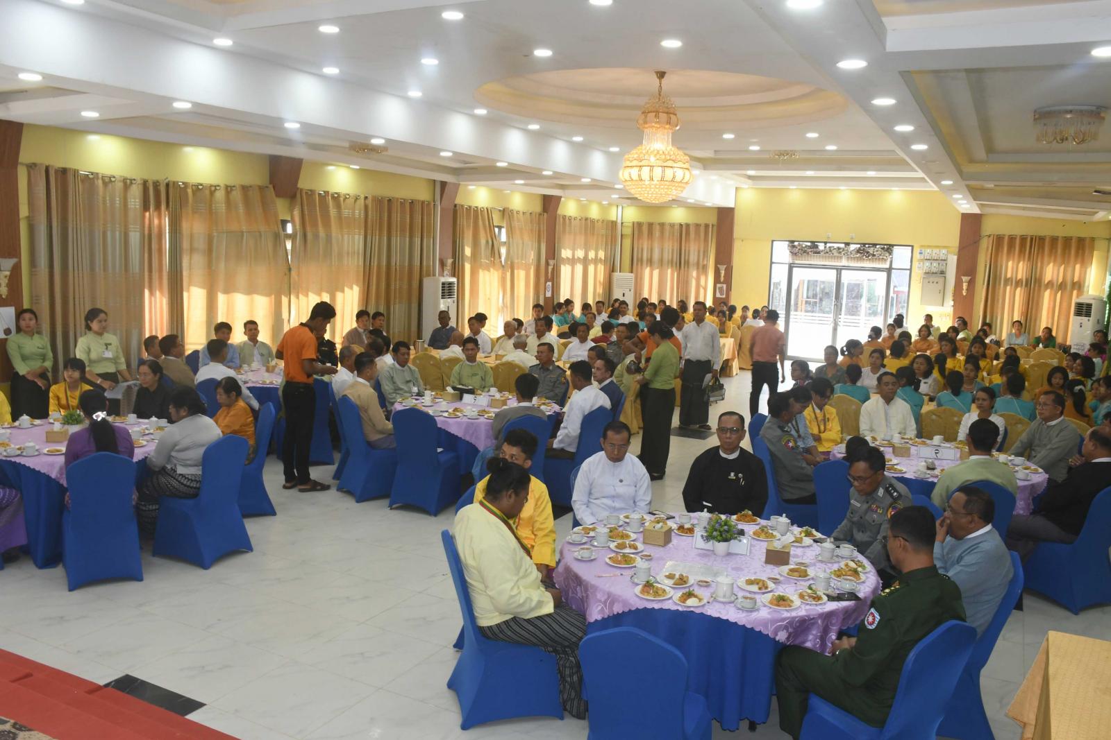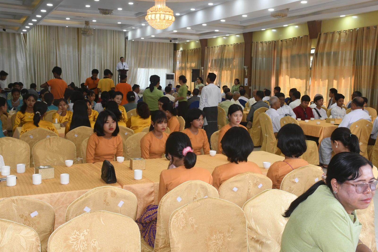(၂၄)ကြိမ်မြောက် မြန်မာ့ရိုးရာယဉ်ကျေးမှု အဆို၊ အက၊ အရေး၊ အတီးပြိုင်ပွဲ (ဗဟိုအဆင့်) ပြိုင်ပွဲ၌ ရခိုင်ပြည်နယ်မှ ဝင်ရောက်ယှဉ်ပြိုင်ခဲ့သည့် ပြိုင်ပွဲဝင်များအား ရခိုင်ပြည်နယ်အစိုးရအဖွဲ့က ထပ်ဆင့် ဂုဏ်ပြုဆု ချီးမြှင့်ပွဲအခမ်းအနားကို ယမန်နေ့ညနေပိုင်းက အာရီယန်ခန်းမ၌ကျင်းပရာ ပြည်နယ်ဝန်ကြီးချုပ် ဦးထိန်လင်းနှင့်ဇနီး ဒေါ်ဆွေဆွေမြတ်၊ ပြည်နယ်တရားလွှတ်တော်တရားသူကြီးချုပ်၊ ပြည်နယ်အစိုးရအဖွဲ့ဝင် ဝန်ကြီးများ၊ ပြည်နယ်အဆင့်ဌာနဆိုင်ရာတာဝန်ရှိသူများ၊ နည်းပြဆရာ၊ ဆရာမများ၊ ပြည်နယ်ကိုယ်စားပြု သွားရောက်ယှဉ်ပြိုင်ခဲ့ကြသည့် ပြိုင်ပွဲဝင်များ၊ ရခိုင်ပြည်နယ်က ဝင်ရောက်ယှဉ်ပြိုင်နိုင်ရေး ကြိုးပမ်း ဆောင်ရွက်ခဲ့ကြသည့် ကြီးကြပ်သူ၊ အဖွဲ့ခေါင်းဆောင်များ တက်ရောက်ကြသည်။
