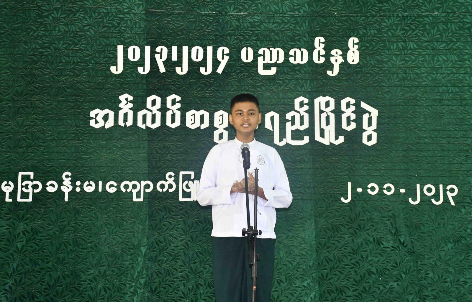 ရခိုင်ပြည်နယ်၊ ကျောက်ဖြူမြို့နယ်အတွင်းရှိ အခြေခံပညာကျောင်းများမှ ကျောင်းသား၊ကျောင်းသူ များအား ပညာကိုကြိုးစားအားထုတ်မှု ပိုမိုတိုးပွားလာစေရန်နှင့် ဉာဏ်ရည်ဉာဏ်သွေး ထက်မြက်လာစေရန် ရည်ရွယ်၍ ၂၀၂၃-၂၀၂၄ ပညာသင်နှစ် မြို့နယ်အဆင့်အင်္ဂလိပ်စာစွမ်းရည် ကျပန်းစကားပြောပြိုင်ပွဲကို ယမန်နေ့နံနက်ပိုင်းက မြို့နယ်ပညာရေးမှူးရုံးရှိ ကုမုဒြာခန်းမတွင် ကျင်းပပြုလုပ်သည်။