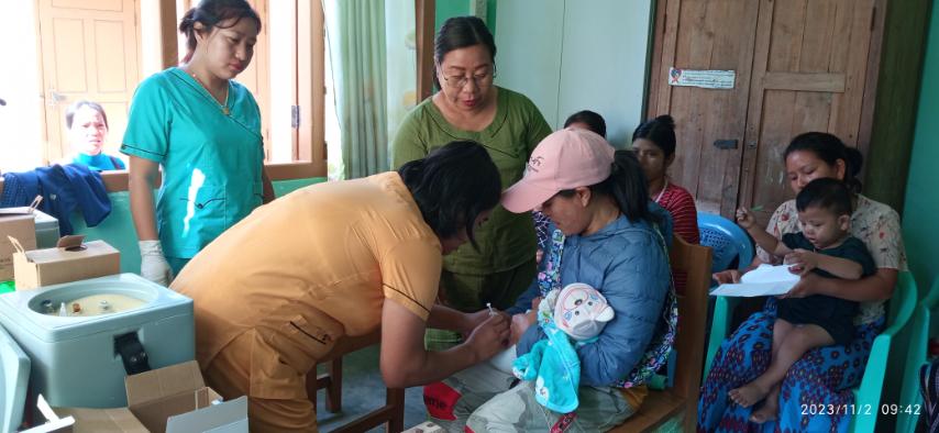 ကချင်ပြည်နယ်၊ တနိုင်းမြို့နယ် ကျန်းမာရေးဦးစီးဌာနမှ အသက်(၂)လမှ(၁)နှစ်ခွဲ ကလေးငယ်များကို ကာကွယ်ဆေးထိုးနှံ/တိုက်ကျွေးပေးခြင်းကို ယမန်နေ့နံနက် (၈)နာရီခွဲတွင် တနိုင်းမြို့နယ် မိခင်နှင့်ကလေးကျန်းမာရေးဌာန၌ ဆောင်ရွက်ခဲ့သည်။