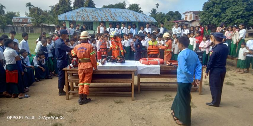 ရှေးဦးစွာ မီးသတ်ဦးစီးဌာနမှ ဦးစီးအရာရှိ ဦးအောင်ဇော်ဝင်းက မီးဘေးသဘာဝဘေးနှင့် အခြားသောဘေး အန္တရာယ်များနှင့် ပတ်သက်သည့်များအား အသိပညာပေး ဟောပြောကြားပြီး သဘာဘေးအန္တရာယ် ကြိုတင်ကာကွယ်ရေး အသုံးပြုနည်းများကို မီးသတ်ဦးစီးဌာနမှ ဝန်ထမ်းများက လက်တွေ့ သရုပ်ပြခဲ့ကြသည်။