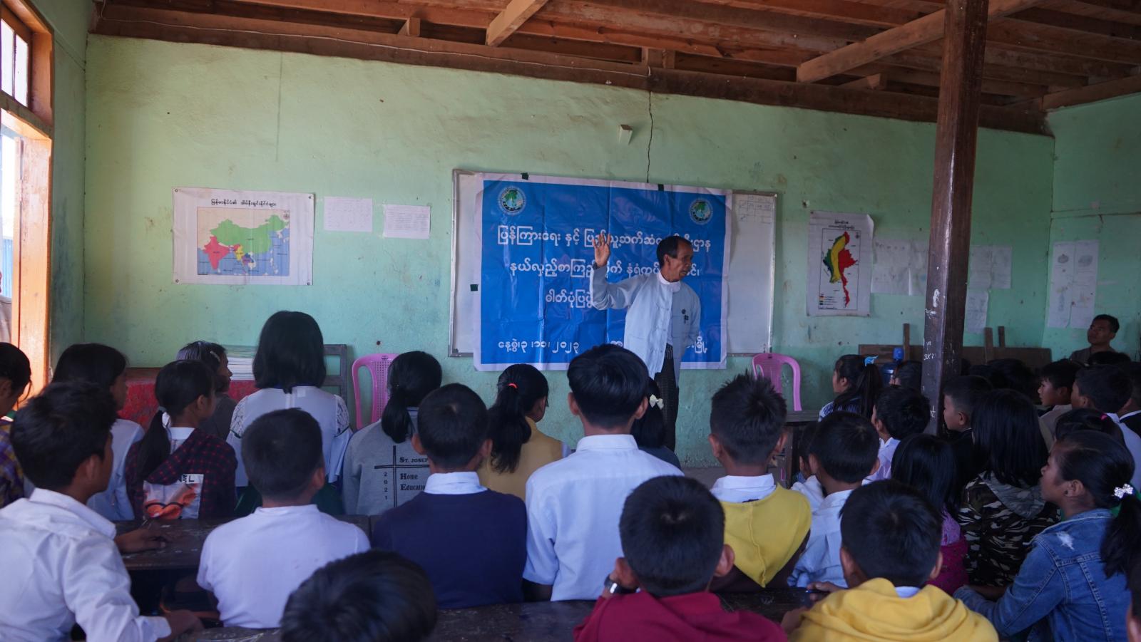 ထို့နောက် ဘေးအန္တရာယ်ဆိုင်ရာစီမံခန့်ခွဲမှုဦးစီးဌာန၊ ဒုတိယဦးစီးမှူးဦးမန်ခန့်လာလ်က သဘာဝဘေးအန္တရာယ်အမျိုးမျိုး၊ သဘာဝဘေးအန္တရာယ်ဆိုင်ရာ သိကောင်းစရာများ ဆွေးနွေးသည်။ ဆက်လက်၍ ပြန်ကြားရေးနှင့်ပြည်သူ့ဆက်ဆံရေးဦးစီးဌာနကငှားရမ်းပေးသည့် စာအုပ်စာစောင်များကို ကျောင်းသား/သူများက စိတ်ဝင်တစားလေ့လာဖတ်ရှုကြသည်။ ထို့နောက် မီးဘေးနှင့် မြေပြိုဘေးအန္တရာယ်ဆိုင်ရာ လက်ကမ်းစာစောင်များဖြန့်ဝေကြကြောင်းသိရသည်။