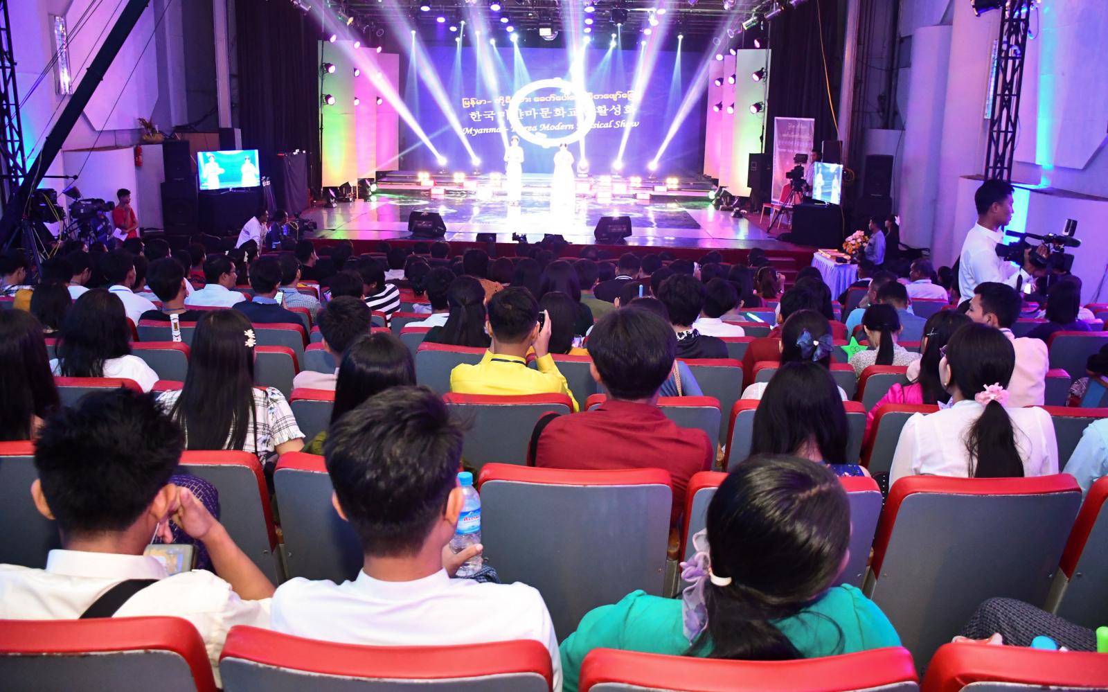 မြန်မာ-ကိုရီးယား ယဉ်ကျေးမှုဖလှယ်နိုင်ရန်နှင့် Korea K-Pop အနုပညာနှစ်ခြိုက်သူများ ကြည့်ရှုနားဆင်နိုင်ရန်အတွက် Myanmar-Korea Musical Show ခေတ်ပေါ်တေးဂီတ ဖျော်ဖြေပွဲကို မြန်မာ့အသံနှင့်ရုပ်မြင်သံကြားက Friday Night Live Show အဖြစ် ယမန်နေ့ည ၉ နာရီတွင် ရန်ကုန်မြို့ ပြည်လမ်းရှိ မြန်မာ့အသံနှင့်ရုပ်မြင်သံကြား Studio(A)မှ တိုက်ရိုက် (Live) ရိုက်ကူးထုတ်လွှင့်ခဲ့ရာ ပြည်သူများ တစ်ခဲနက်ကြည့်ရှုအားပေးကြသည်။