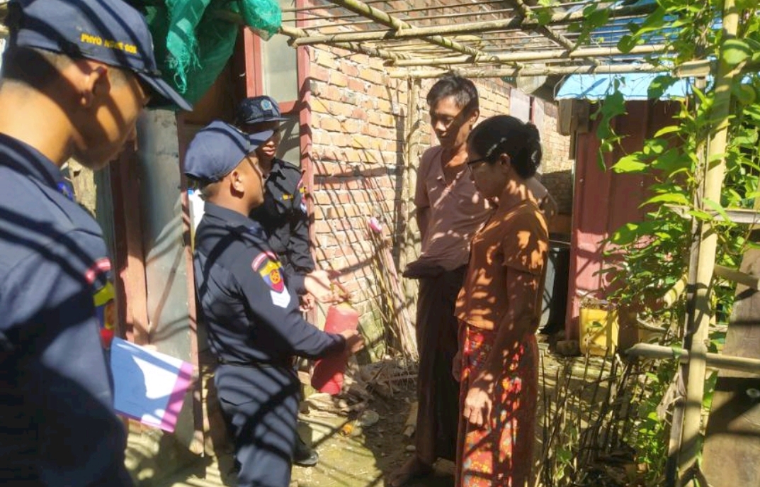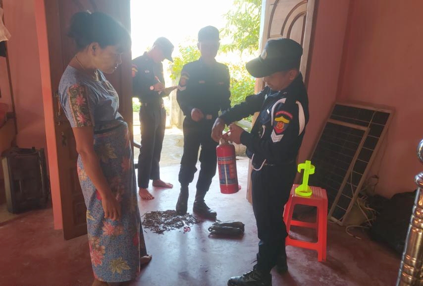ထိုသို့ မီးဘေးအန္တရာယ် ကြိုတင်ကာကွယ်ရေးအတွက် တစ်အိမ်တက်ဆင်းစစ်ဆေးရာတွင် မြို့နယ်မီးသတ်စခန်းမှ တပ်ကြပ်ကြီးအောင်မြတ်လင်းနှင့် တပ်ဖွဲ့၀င်များက အရှေ့မြောက်ရပ်ကွက်အတွင်းရှိ မိဘပြည်သူများအနေဖြင့် မီးဘေးအန္တရာယ်ကင်းဝေးစေရေးနှင့် မီးလောင်ကျွမ်းမှု မဖြစ်ပေါ်စေရေးတို့ အတွက် မီးသတ်ဦးစီးဌာနမှ ထုတ်ပြန်ထားသော မီးဘေးလုံခြုံရေးဆိုင်ရာ ညွှန်ကြားချက်များဖြစ်သည့် မီးချိတ်၊ မီးကပ်၊ သဲအိတ်နှင့် မီးသတ်ဆေးဘူးစသော မီးဘေးကာကွယ်ရေးပစ္စည်းများ အသင့်ထားရှိရေး၊ လောင်စာဆီများသို လှောင်ခြင်းမပြုရန်၊ တပ်ဆင်ထားသော ဟောင်းနွမ်းလျှပ်စစ်ဝါယာကြိုးများနှင့် ပျက်စီးနေ သောလျှပ်စစ်ပစ္စည်းများ အသုံးမပြုကြရန်၊ မီးသွေးမီးဖိုဖြင့် ထမင်း၊ ဟင်းချက်ပြုတ်ပြီးပါက မီးကြွင်းမီးကျန်များအား စနစ်တကျ မီးငြိမ်းသတ်ကြရန်စသည့် မီးဘေးအန္တရာယ် မဖြစ်ပေါ်စေရေးနှင့် ကြိုတင်ကာကွယ်ရေးအတွက် ဆောင်ရန်/ရှောင်ရန်အချက်များအား ကွင်းဆင်းစစ်ဆေး အသိပညာပေး ဟောပြောခဲ့ကြောင်း သိရသည်။