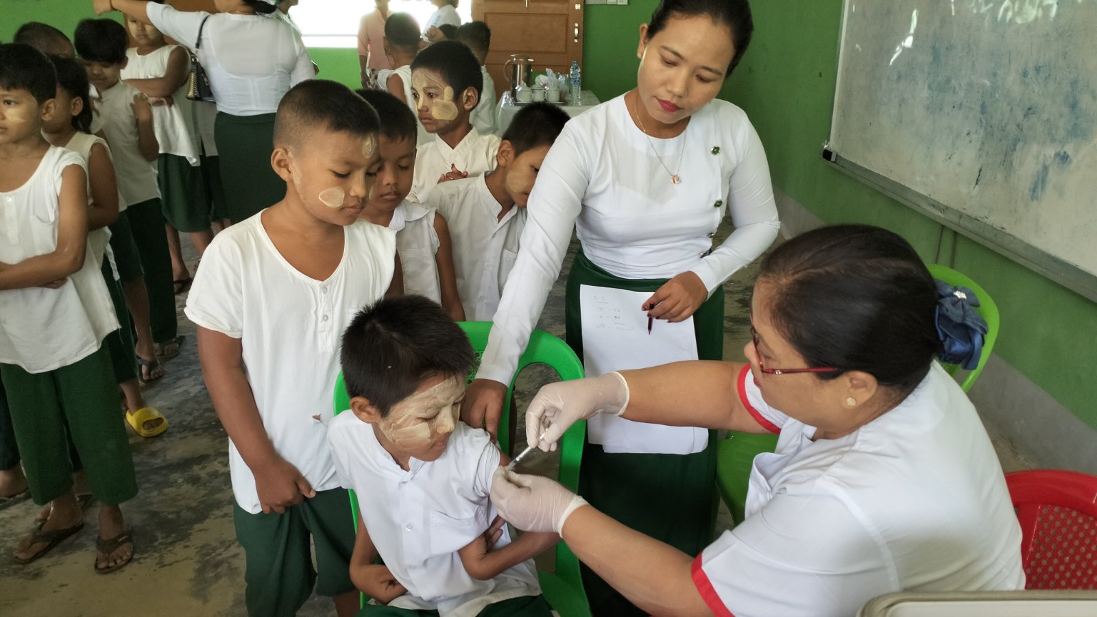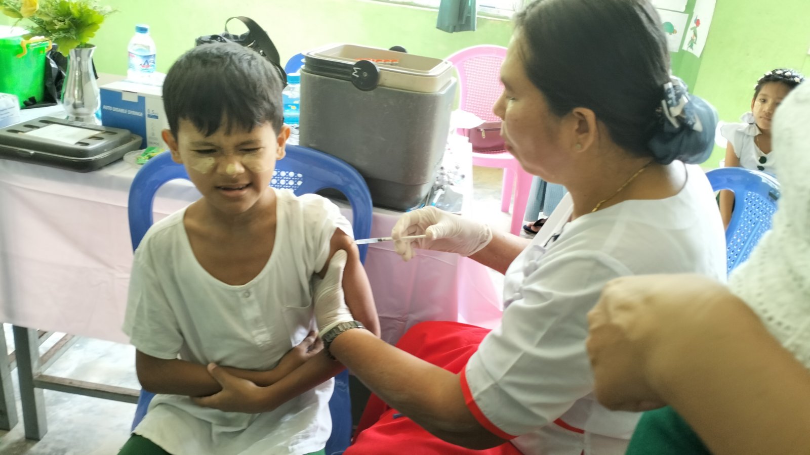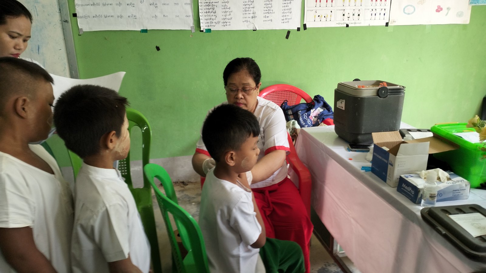 ရခိုင်ပြည်နယ်၊ မောင်တောခရိုင်၊ ဘူးသီးတောင်မြို့၌ ကျောင်းသား/သူများအား ကိုဗစ်-၁၉ ကာကွယ်ဆေး (စတုတ္ထအကြိမ်) စတင်ထိုးနှံခြင်းကို ယမန်နေ့ နံနက် ၉ နာရီခွဲ အချိန်က အမှတ်(၂) အခြေခံပညာအထက်တန်းကျောင်းခန်းမ၌ ထိုးနှံပေးလျက်ရှိကြောင်း သိရသည်။