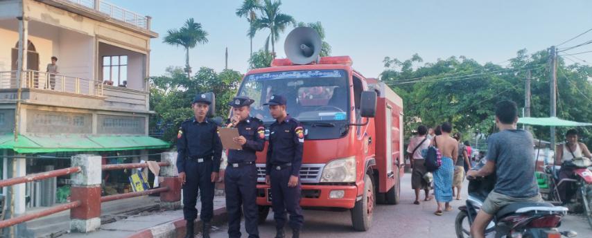 အဆိုပါ မီးဘေးအန္တရာယ်အသိပေးနှိုးဆော်ရာတွင် မြို့နယ်မီးသတ်ဦးစီးဌာနမှ လက်ထောက် မီးသတ်ဦးစီးမှူး ဖြိုးဟိန်းပိုင်ဦးဆောင်သော မီးသတ်တပ်ဖွဲ့ဝင်များသည် မီးဘေးလုံခြုံရေးဆိုင်ရာ ညွှန်ကြားချက်များဖြစ်သည့် မီးဘေးအန္တရာယ်ကြိုတင်ကာကွယ်ရေးအတွက် ပြည်သူများ၏ နေအိမ်များတွင် မီးချိတ်၊ မီးကပ်၊ သဲအိတ်နှင့်မီးသတ်ဆေးဘူး စသည့် မီးဘေးကာကွယ်ရေး ပစ္စည်းများအား အသင့်ထားရှိရေး၊ နေအိမ်များတွင် လောင်စာဆီများ သိုလှောင်ခြင်းမပြုရန်၊ အိမ်တွင်တပ်ဆင်ထားသော ဟောင်းနွမ်းလျှပ်စစ်ဝါယာကြိုးများနှင့် ပျက်စီးနေသောလျှပ်စစ် ပစ္စည်းများအားအသုံးမပြုကြရန်၊ မီးသွေး မီးဖိုဖြင့် ထမင်း၊ ဟင်းချက်ပြုတ်ပြီးပါက မီးကြွင်း မီးကျန်များအား စနစ်တကျမီးငြိမ်းသတ်ကြရန်၊ ဖယောင်းတိုင်မီး၊ အမွှေးတိုင်၊ ခြင်ဆေးခွေများ အား ငြှိမ်းသတ်ထားကြရန်နှင့် မီးလောင်မှုဖြစ်ပွားပါက မြို့နယ်မီးသတ်ဦးစီးဌာနသို့ ချက်ချင်း အကြောင်းကြားကြရန်စသည်တို့အား အသိပေးနှိုးဆော်ခဲ့ကြကြောင်း သိရသည်။