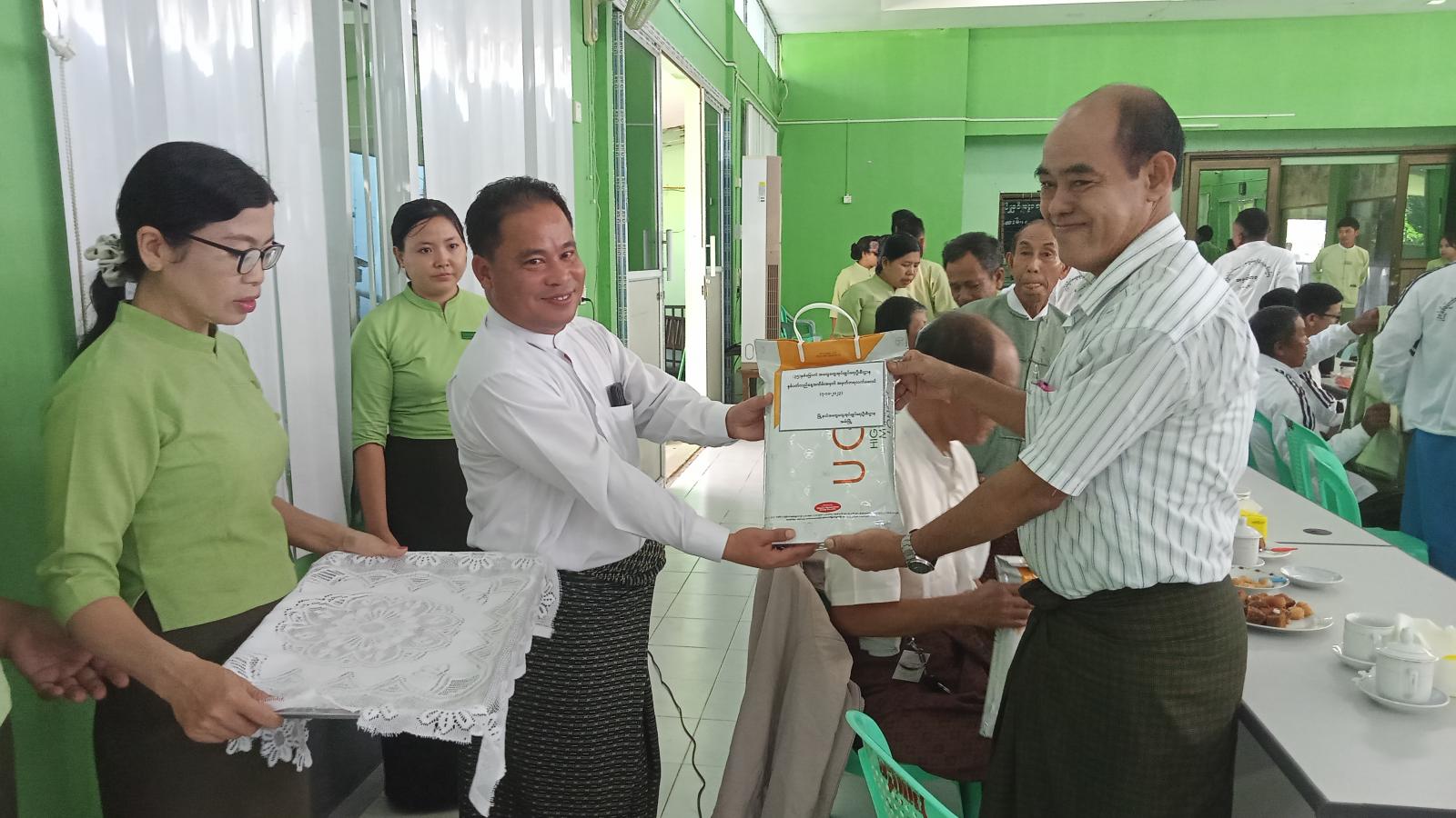 ယင်းနောက် မြို့နယ်စီမံအုပ်ချုပ်ရေးအဖွဲ့ဥက္ကဋ္ဌ ဦးစိုးမင်းထက်က မြို့နယ်အထွေထွေ အုပ်ချုပ်ရေးဦးစီးဌာနမှ အငြိမ်းစားယူသွားသည့် ဝန်ထမ်းများအား အမှတ်တရ လက်ဆောင်ပစ္စည်းများပေးအပ်ပြီး မြို့နယ်အထွေထွေအုပ်ချုပ်ရေးဦးစီးဌာနမှ ဝန်ထမ်းများနှင့် ရပ်ကွက်/ကျေးရွာအုပ်ချုပ်ရေးမှူးများအား တူညီဝတ်စုံများကို ပေးအပ်ခဲ့ကြောင်း သိရသည်။