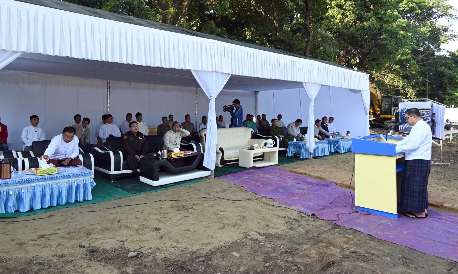 ထို့အတူ ပြည်နယ်ဝန်ကြီးချုပ်သည် ပြည်နယ်တရားလွှတ်တော်တရားသူကြီးချုပ်၊ ပြည်နယ် ဝန်ကြီးများနှင့်အတူ နိုဝင်ဘာ ၇ ရက် နံနက် ၈ နာရီက မြစ်ကြီးနားမြို့ အေးစေတီရပ်ကွက်အတွင်းရှိ ပြည်နယ်ကြက်ခြေနီကြီးကြပ်မှုကော်မတီရုံးဝင်းအတွင်း တည်ဆောက်သွားမည့် (၂)ထပ် RCC ဆိုင်ခန်း (၂၆) ခန်း တည်ဆောက်နိုင်ရေးအတွက် ပန္နက်တင်မင်္ဂလာအခမ်းအနားသို့ တက်ရောက်ကြ ပြီး ပန္နက်ရိုက်တင်ပေးကြကာ အမွှေးနံ့သာရည်များ ပက်ဖျန်းပေးကြသည်။