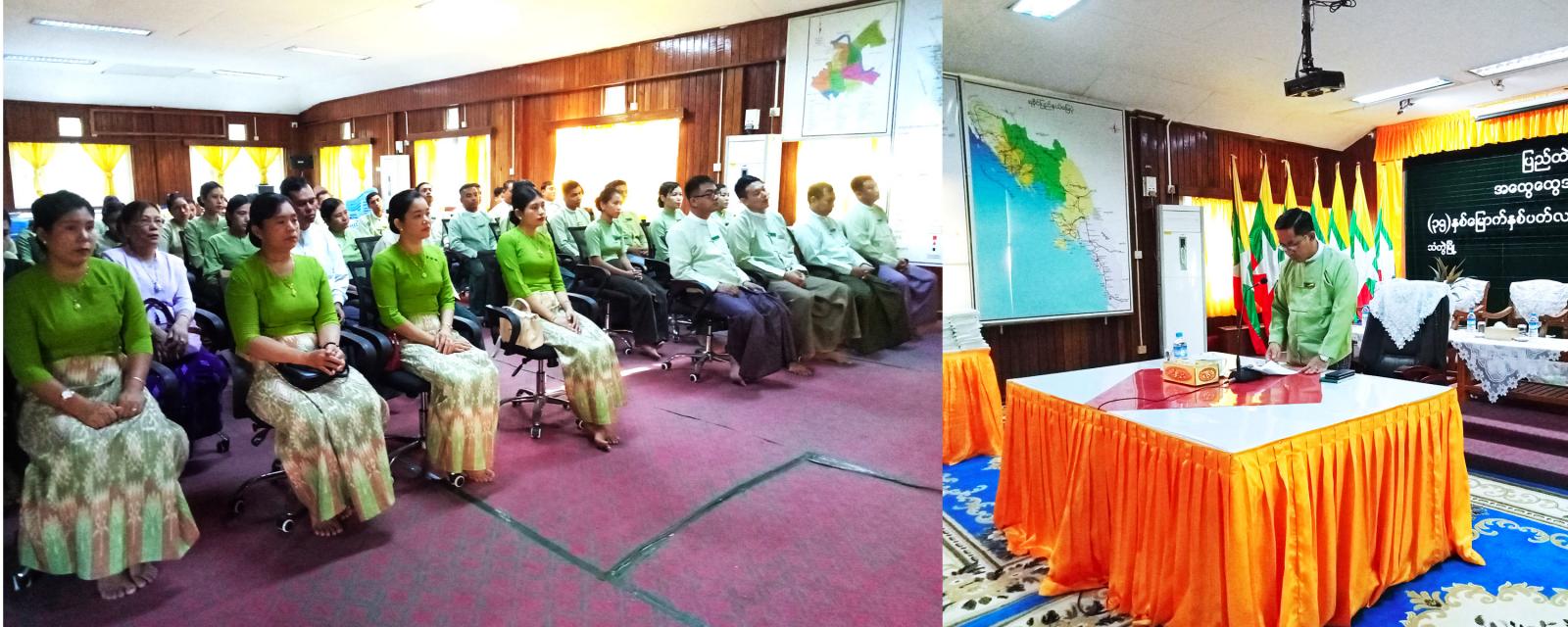 ရှေးဦးစွာ သံတွဲခရိုင်အုပ်ချူပ်ရေးမှူးဦးမျိုးချစ်က အထွေထွေအုပ်ချုပ်ရေးဦးစီးဌာန ဖြစ်ပေါ်လာပုံသမိုင်းကြောင်းကို ရှင်းလင်းပြောကြားပြီး Video Clip ကိုပြသခဲ့သည်။ ထို့နောက် ခရိုင်အုပ်ချုပ်ရေးမှူးက ခရိုင်မိသားစု စည်းကမ်းထိန်းသိမ်းရေး ကော်မတီဥက္ကဋ္ဌနှင့်အဖွဲ့ဝင်များအား လက်ဆောင်ပစ္စည်းများပေးအပ်ပြီး ဝန်ထမ်းများအား တူညီဝတ်စုံများပေးအပ်ခဲ့သည်။ ဆက်လက်၍ အငြိမ်းစားဝန်ထမ်းများအား အမှတ်တရလက်ဆောင်ပစ္စည်များ ပေးအပ်ခဲ့သည်။