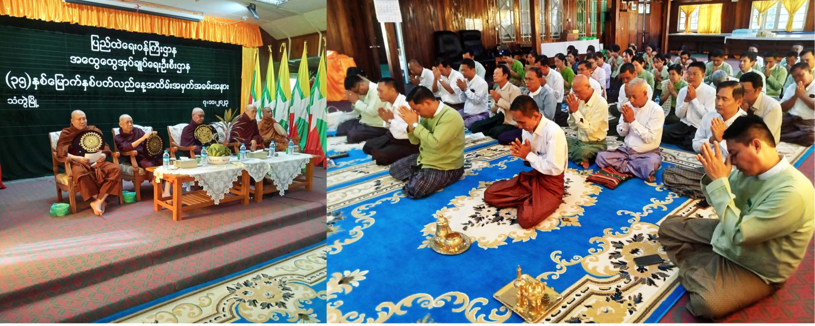 အခမ်းအနားအပြီးတွင် ပြည်ထဲရေးဝန်ကြီးဌာန၊ အထွေထွေအုပ်ချုပ်ရေးဦးစီးဌာန (၃၅)နှစ်မြောက် နှစ်ပတ်လည်နေ့ အထိမ်းအမှတ် အလှူအဖြစ် သံတွဲမြို့နယ် သံဃာ့နာယကဥက္ကဋ္ဌ ဆရာတော်ဘဒ္ဒန္တရေဝတအမှူးပြုသည့် ဆရာတော်ငါးပါးထံမှ ငါးပါးသီလခံယူပြီး မေတ္တာသုတ် ပရိတ်တရားတော်များနာယူကြကာ လှူဘွယ်ဝတ္ထုများ ဆက်ကပ်လှူဒါန်းကြပြီး လှူဒါန်းမှုအစုစုတို့ကို ရေစက်သွန်းချ အမျှပေးဝေခဲ့ကြသည်။ ထို့နောက် ဆရာတော်ငါးပါးတို့အား နေ့ဆွမ်းဆက်ကပ်လှူဒါန်းခဲ့ကြကြောင်း သိရှိရသည်။