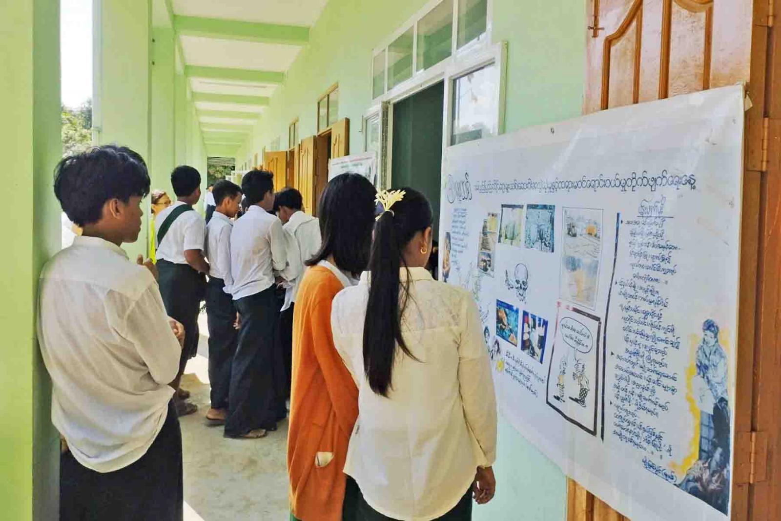 ထို့နောက် မြို့နယ်ဦးစီးမှူးနှင့် ဝန်ထမ်းများက ကျောင်းသား၊ ကျောင်းသူများ အသိပညာဗဟုသုတ တိုးပွားစေရန်အတွက် ကလေးအလုပ်သမားပပျောက်ရေးဆိုင်ရာ လက်ကမ်းစာစောင်များကို ဖြန့်ဝေဆောင်ရွက်ပေးကာ မူးယစ်ဆေးဝါးအန္တရာယ်နှင့် လူကုန်ကူးမှုအန္တရာယ် ကြိုတင်ကာကွယ်ရေး အသိပညာပေး နံရံကပ်စာစောင်နှင့် မှတ်တမ်းဓာတ်ပုံများကို ခင်းကျင်းပြဆောင်ရွက်ပေးရာ ကျောင်းသား၊ ကျောင်းသူများက စိတ်ဝင်တစ်စား ဝင်ရောက်လေ့လာ ဖတ်ရှုခဲ့ကြောင်း သိရသည်။