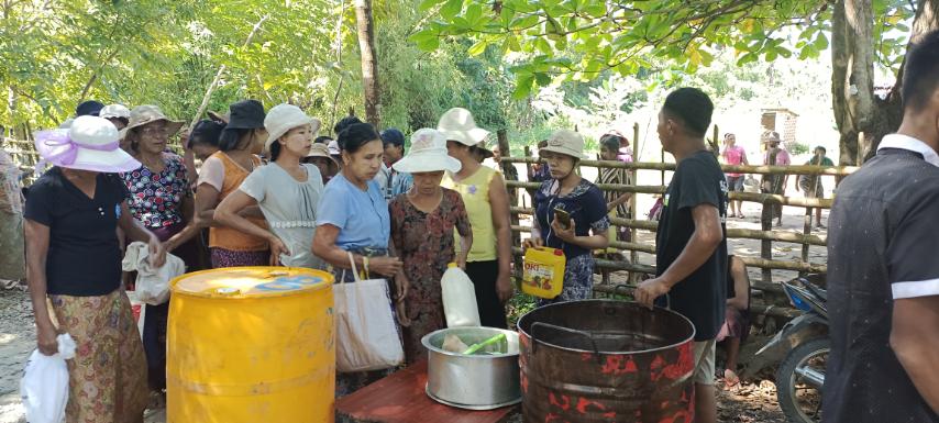ထိုသို့ ရောင်းချရာတွင် ရခိုင်ပြည်နယ်ဆီကုန်သည်နှင့် ဆီလုပ်ငန်းရှင်များအသင်းဝင် မာန်အောင်မြို့နယ်စားသုံးဆီအရောင်း ကိုယ်စားလှယ် ဒေါ်မေမေအောင်နှင့်အဖွဲ့က မင်းဆိပ်ပြင်ကျေးရွာအုပ်စု၊ မင်းဆိပ်ပြင်ကျေးရွာနေ ပြည်သူများအား စားသုံးဆီ