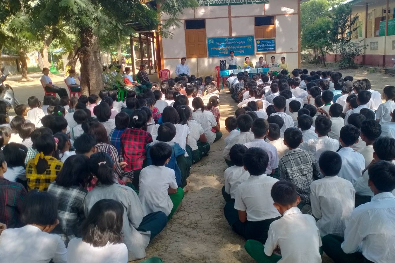 ရှေးဦးစွာ ကျောင်းအုပ်ဆရာကြီး ဦးဝင်းလှိုင်က အမှာစကားပြောကြားပြီး ပြန်ကြားရေးနှင့်ပြည်သူ့ဆက်ဆံရေးဦးစီးဌာနမှ ဒုတိယဦးစီးမှူး ဒေါ်ဝင်းမေထွန်းက စာပေဖတ်ရှုခြင်းဖြင့် ရရှိလာမည့် အကျိုးကျေးဇူးများအကြောင်း၊ စာဖတ်နည်းသုံးနည်းအကြောင်းကိုလည်းကောင်း၊ စာသုံးသူရေးရာဦးစီးဌာနမှ မြို့နယ်တာဝန်ခံ ဒေါ်ဌေးဌေးက စားသုံးသူအခွင့်အရေးများဆိုင်ရာနှင့် ကုန်ညွှန်းအမှတ်အသားများ အကြောင်းကိုလည်းကောင်း၊ အားကစားနှင့်ကာယပညာဦးစီးဌာနမှ အကြီးတန်းစာရေး ဒေါ်ခင်မျိုးဆွေက လူငယ်များနှင့်ပတ်သက်၍ အာကစားနှင့်စိတ်ဓာတ် အကြောင်းကိုလည်းကောင်း၊ တိုင်းရင်းဆေးကုဌာနမှ မြို့နယ်ဦးစီးမှူး ဒေါ်ဝေယံမြင့်က တစ်ကိုယ်ရေသန့်ရှင်းရေး အကြောင်းကိုလည်းကောင်း အသီးသီး ရှင်းလင်းပြောကြားခဲ့ကြသည်။