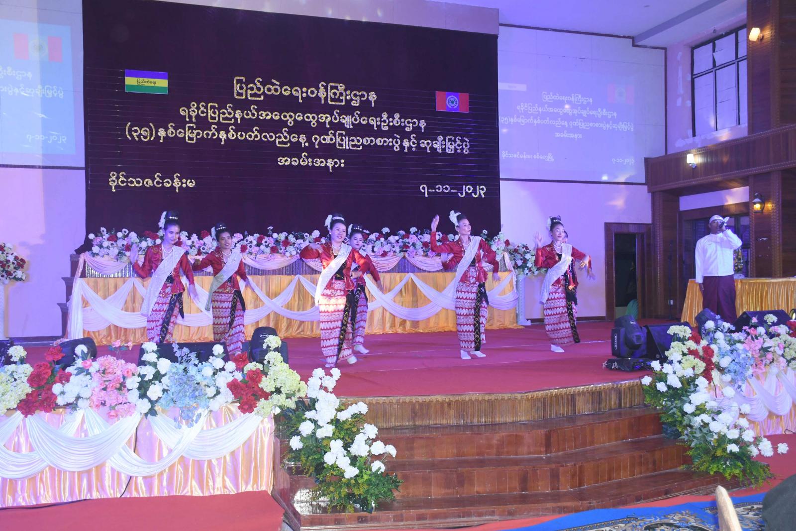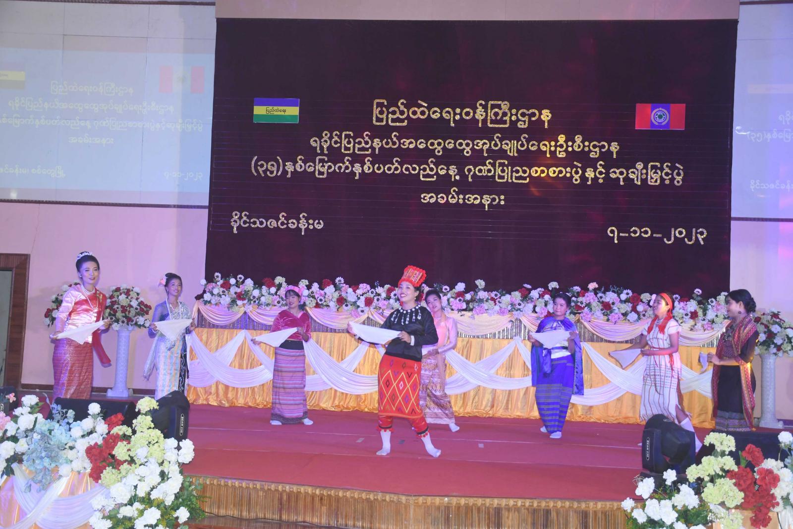 ဆက်လက်ပြီး ရခိုင်ပြည်နယ်အထွေထွေအုပ်ချုပ်ရေးဦးစီးဌာန၊ ပြည်နယ်အုပ်ချုပ်ရေးမှူး ဦးကျော်သူဇော်က အထွေထွေအုပ်ချုပ်ရေးဦးစီးဌာန သမိုင်းကြောင်းနှင့်ဖြစ်ပေါ်လာပုံအား ရှင်းလင်းတင်ပြသည်။ ထို့နောက် ရခိုင်ပြည်နယ်ဝန်ကြီးချုပ် ဦးထိန်လင်းနှင့်တာဝန်ရှိသူတို့က ရခိုင်ပြည်နယ်၊ အထွေထွေအုပ်ချုပ်ရေးဦးစီးဌာနမှ ထူးချွန်ဝန်ထမ်းများအား ဆုချီးမြှင့်ပေးကြပြီး ရခိုင်ပြည်နယ်၊ အထွေထွေအုပ်ချုပ်ရေးဦးစီးဌာနဝန်ထမ်းများက ကပြဖျော်ဖြေတင်ဆက်ခဲ့ကြကာ ရခိုင်ပြည်နယ်ဝန်ကြီးချုပ်နှင့်တာဝန်ရှိသူများက ကြည့်ရှုအားပေးခဲ့ကြကြောင်း သိရသည်။