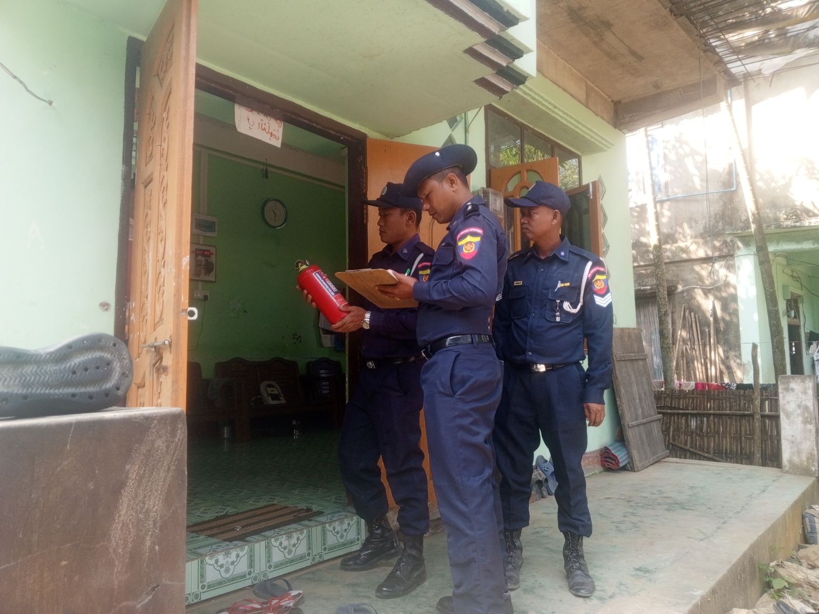 ထိုသို့ မီးဘေးအန္တရာယ်ကြိုတင်ကာကွယ်ရေးအတွက် တစ်အိမ်တက်ဆင်း စစ်ဆေးရာတွင် မြို့နယ်မီးသတ်စခန်းမှ ဒုတိယမီးသတ်ဦးစီးမှူး ဦးအောင်သန်းဝင်းဦးဆောင်၍ မီးသတ်တပ်ဖွဲ့ဝင်များက အနောက်ရပ်ကွက်အတွင်းရှိ မိဘပြည်သူများအနေဖြင့် မီးဘေးအန္တရာယ်ကင်း ဝေးစေရေးနှင့် မီးလောင်ကျွမ်းမှု မဖြစ်ပေါ်စေရေးတို့အတွက် မီးသတ်ဦးစီးဌာနမှ ထုတ်ပြန်ထားသော မီးဘေးလုံခြုံရေးဆိုင်ရာ ညွှန်ကြားချက်များဖြစ်သည့် မီးချိတ်၊ မီးကပ်၊ သဲအိတ်နှင့် မီးသတ်ဆေးဘူးစသော မီးဘေးကာကွယ်ရေးပစ္စည်းများ အသင့်ထားရှိရေး၊ လောင်စာဆီများ သိုလှောင်ခြင်းမပြုရန်၊ တပ်ဆင်ထားသော ဟောင်းနွမ်း လျှပ်စစ်ဝါယာကြိုးများနှင့် ပျက်စီးနေသော လျှပ်စစ်ပစ္စည်းများ အသုံးမပြုကြရန်၊ မီးသွေးမီးဖိုဖြင့် ထမင်း၊ ဟင်းချက်ပြုတ်ပြီးပါက မီးကြွင်းမီးကျန်များအား စနစ်တကျ မီးငြှိမ်းသတ်ကြရန် စသည့် မီးဘေးအန္တရာယ် မဖြစ်ပေါ်စေရေးနှင့် ကြိုတင်ကာကွယ်ရေးအတွက် ဆောင်ရန်/ရှောင်ရန်အချက်များအား ကွင်းဆင်းစစ်ဆေး အသိပညာပေးဟောပြောခဲ့ကြောင်း သိရသည်။
