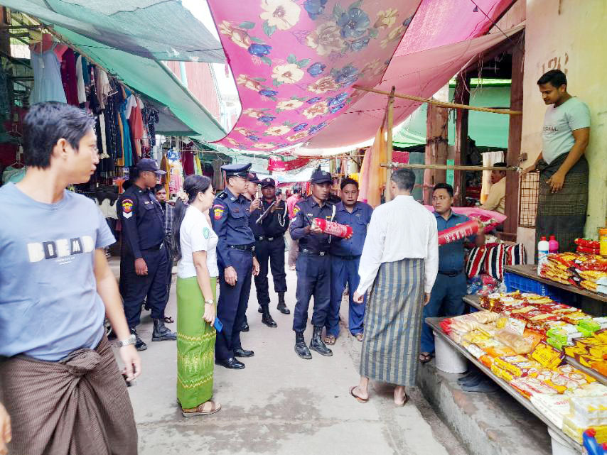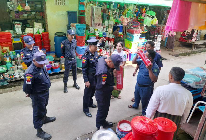 ထိုသို့ ဆောင်ရွက်ရာတွင် မြို့နယ်မီးသတ်ဦးစီးမှူး ဦးစီးအရာရှိ ဦးထွန်းရွှေခိုင် ဦးဆောင်၍ တပ်ဖွဲ့ဝင်များ၊ မြို့နယ်စည်ပင် သာယာရေးအဖွဲ့ဝင်များ၊ ဈေးကော်မတီအဖွဲ့တို့မှ မြို့မဈေးကြီးအတွင်းရှိ ဈေးဆိုင်များတွင် ဈေးရောင်းချသူများအနေဖြင့် မီးဘေးလုံခြုံရေး၊ မီးကို စနစ်တကျ သုံးစွဲကြရေး၊ မီးဘေးမပေါ့ကြစေရန်နှင့် ဈေးအတွင်း မတော်တဆမီးလောင်မှုဖြစ်ပွားပါက ရှေးဦးစွာ မီးငြှိမ်းသတ် ဆေးဘူးဖြင့် စနစ်တကျဖြင့် မီးငြှိမ်းသတ်မှုများ၊ ဈေးအတွင်း မီးဘေးအန္တရာယ်ကြိုတင်ကာကွယ်ရေးအတွက် မီးချိတ်၊ မီးကပ်များ ကြံ့ခိုင်မှုရှိ/မရှိ၊ မီးသတ်ဆေးဘူးများတွင် (လေပေါင်)ရှိ/မရှိ၊ သဲအိတ်များ၊ ရေပုံး၊ ရေပိုက်ခေါင်းများ၊ မီးသတ်ဆေးဘူးများအား အလွယ်အတူ အသုံးပြုနိုင်ရန် အဆင်သင့်ဆောင်ရွက်ထားရှိရေး၊ မီးသတ်ဆေးဘူးများဟောင်းနွမ်းနေပါက အသစ်လဲလှယ်စေရေး၊ ရေစုကန်များအတွင်း ရေလုံလောက်စွာရှိ/မရှိ၊ အပေါ့စားရေစုပ် အားကောင်း/မကောင်းစစ်ဆေးပြီး ဈေးအတွင်းလှည့်လည်ကြည့်ရှုစစ်ဆေးအကြုံပြုခဲ့ကြကြောင်း သိရသည်။