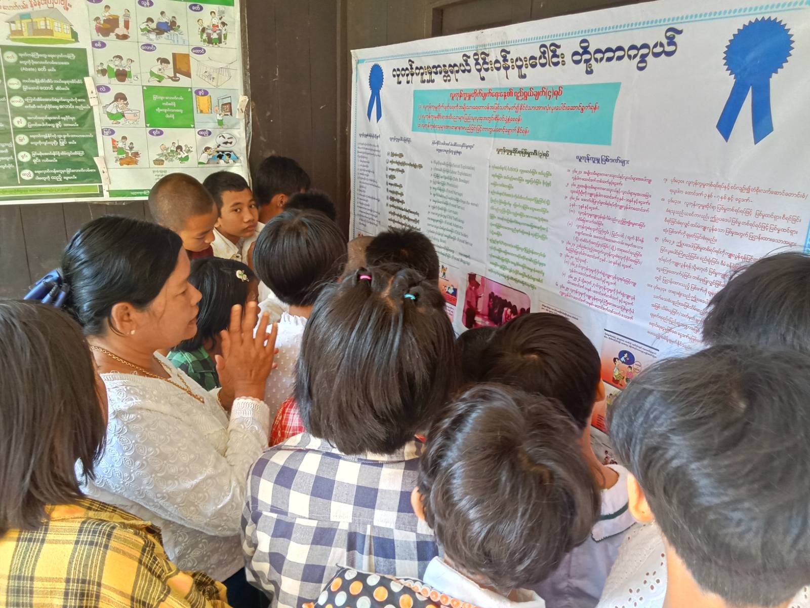 ဟောပြောပွဲအပြီးတွင် မြို့နယ်ပြန်ကြားရေးနှင့်ပြည်သူ့ဆက်ဆံရေးဦးစီးဌာနရုံးမှ ကလေးကြိုက်ရုပ်ပြများ၊ ပုံပြင်စာအုပ်များ၊ တိုင်းရင်းသား ရိုးရာပုံပြင်များ၊ တေဇရုပ်ပြစာအုပ်များဖြင့် ကလေးစာဖတ်ဝိုင်းဆောင်ရွက်ပြီး လူကုန်ကူးမှုအန္တရာယ် တားဆီးကာကွယ်ရေး၊ သဘာဝ ပတ်ဝန်းကျင်ထိန်းသိမ်းရေးနှင့် မူးယစ်ဆေးဝါးအန္တရာယ် တားဆီးကာကွယ်ရေး အသိပညာပေး နံရံကပ်စာစောင်များကို ပြသဆောင်ရွက်ခဲ့ရာ ကျောင်းသား၊ ကျောင်းသူများက စိတ်ပါဝင်စားစွာ လေ့လာဖတ်ရှုခဲ့ကြကြောင်း သိရသည်။
