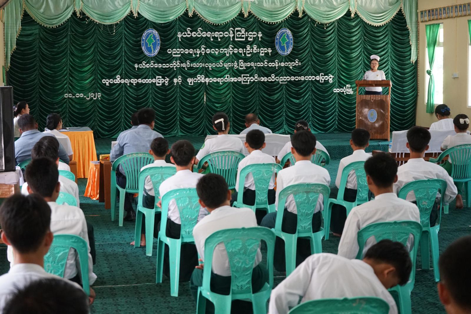 ယင်းနောက် မြို့နယ်ကျန်းမာရေးဦးစီးဌာနမှ အမျိုးသမီးကျန်းမာရေးဆရာမ ဒေါ်ခင်စိုးလှိုင်က လတ်တလော အဖြစ်များနေသည့် မျက်စိနာရောဂါ ဖြစ်ပွားရခြင်း၏အကြောင်းများ၊ ကူးစက်ပုံများနှင့် ကြိုတင်ကာကွယ်ရမည့် အချက်များ၊ မျက်စိနာခြင်းအမျိုးမျိုး၊ မျက်စိရောဂါများနှင့် သတိပြုရမည့် ပြုမူနေထိုင်နည်းများတို့ကို ဆွေးနွေးဟောပြောရာ ကျောင်းသားကျောင်းသူတို့က သိလိုသည်တို့ကို ဆွေးနွေးမေးမြန်းကြပြီး အသိပညာပေး ဟောပြောသူတို့က ပြန်လည်ရှင်းလင်းပေးခဲ့သည်။
