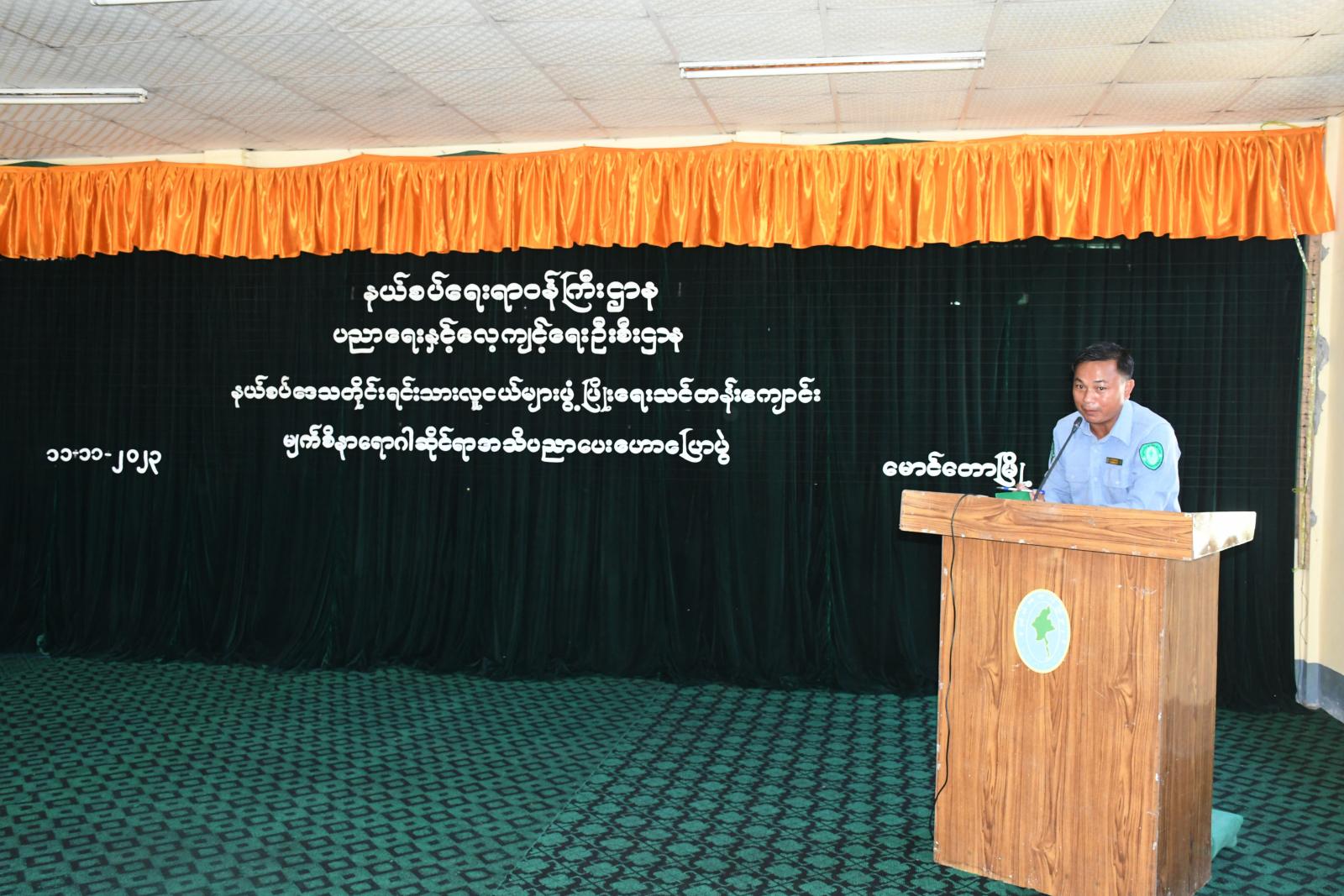 ဦးစွာ နယ်စပ်ဒေသတိုင်းရင်းသားလူငယ်များ ဖွံ့ဖြိုးရေး သင်တန်းကျောင်းမှ ကျောင်းအုပ်ဆရာကြီး ဦးနိန်ကီးက အမှာစကားပြောကြားခဲ့ပြီး ကျန်းမာရေးဦးစီးဌာန၊ မြို့နယ်ကုသရေးဦးစီးဌာနမှူး ဒေါက်တာနုကေသီစံက မျက်စိနာရောဂါသည် ရာသီအကူးအပြောင်းကာလအတွင်း ဖြစ်ပွားတတ်ပါကြောင်း၊ မျက်စိနာ ရောဂါဖြစ်ပွားတတ်သည့် လက္ခဏာများ၊ မျက်စိနာရောဂါသည် ကူးစက်တတ်သည့် ရောဂါဖြစ်ပြီး မျက်စိနာရောဂါ ဖြစ်ပွားပါက တစ်ကိုယ်ရေသုံးပစ္စည်းများကို အခြားသောသူများနှင့် မျှဝေမသုံးသင့်ကြောင်း၊ မျက်စိနာခြင်းသည် အလင်းရောင်ကို မခံနိုင်သည့်အတွက် နေကာမျက်မှန် တင်ဆင်သွားရန်နှင့် မျက်စိနာရောဂါ ဖြစ်ပွားနေသည့်ဟု သံသယရှိပါက နီးစပ်ရာ ဆေးရုံ၊ ဆေးခန်းသို့ လာရောက်ပြသရန်လိုကြောင်း စသည့်တို့ကို အသိပညာပေး ဟောပြောခဲ့သည်။ အဆိုပါ အသိပညာပေး ဟောပြောပွဲသို့ မြို့နယ်ကုသရေးဦးစီးဌာနမှူး ဒေါက်တာ နုကေသီစံ၊ ကျောင်းအုပ်ဆရာကြီး ဦးနိန်ကီးနှင့် ဆရာ၊ ဆရာမများ၊ ကျောင်းသား၊ ကျောင်းသူများ အင်အား ၂၀၀ ခန့် တက်ရောက်ခဲ့ကြကြောင်း သိရသည်။