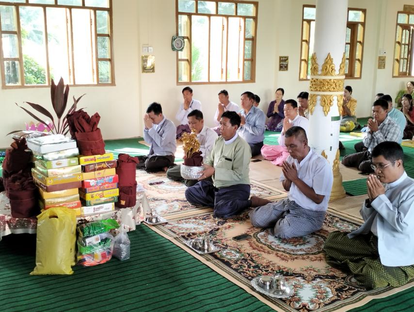 ရှေးဦးစွာ အခမ်းအနားကို နမောတဿ သုံးကြိမ်ရွတ်ဖတ်ပူဇော်၍ ဖွင့်လှစ်ခဲ့ပြီး မြို့နယ်သံဃနာယကဉက္ကဌ ရွာပုလဲဆရာတော်ကြီးထံမှ ငါးပါးသီလခံယူ ဆောက်တည်ကြသည်၊ ဆက်လက်ပြီး ငွေတောင်သာ ကျောင်းဆရာတော်မှ ကထိန်သင်္ကန်း လှူဒါန်းရခြင်း အကျိုးကျေးဇူးနှင့် ပတ်သက်၍ ပရိတ်တရားတော်များ ဟောကြားတော်မူပြီး ကထိန်သင်္ကန်းနှင့် ပဒေသာပင်များကို ဆက်ကပ်လှူဒါန်းကြသည်။ ထို့နောက် လှူဒါန်းမှုအစုစုတို့ကို ရေစက်ချ အမျှအတမ်းပေးဝေကာ သံဃတော်များအား ဆွမ်းဘောစဉ် အာဟာရများ ဆက်ကပ်လှူဒါန်းခဲ့ကြောင်း သိရသည်။