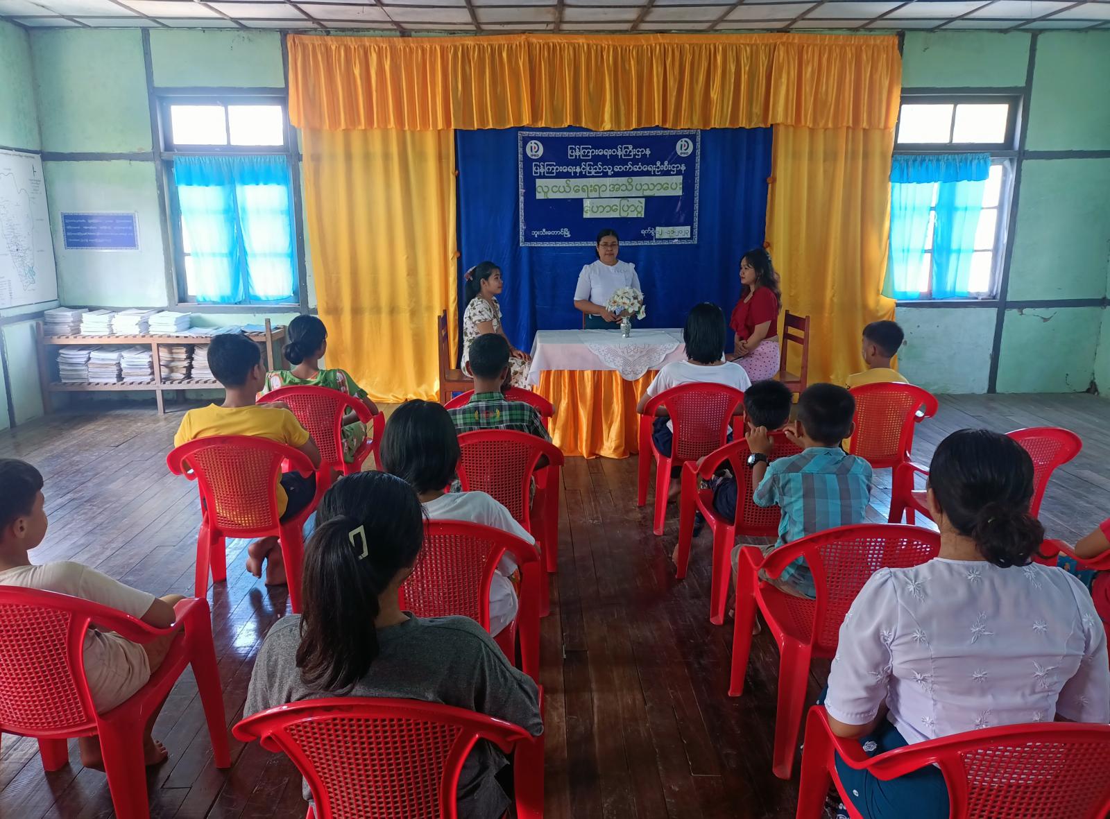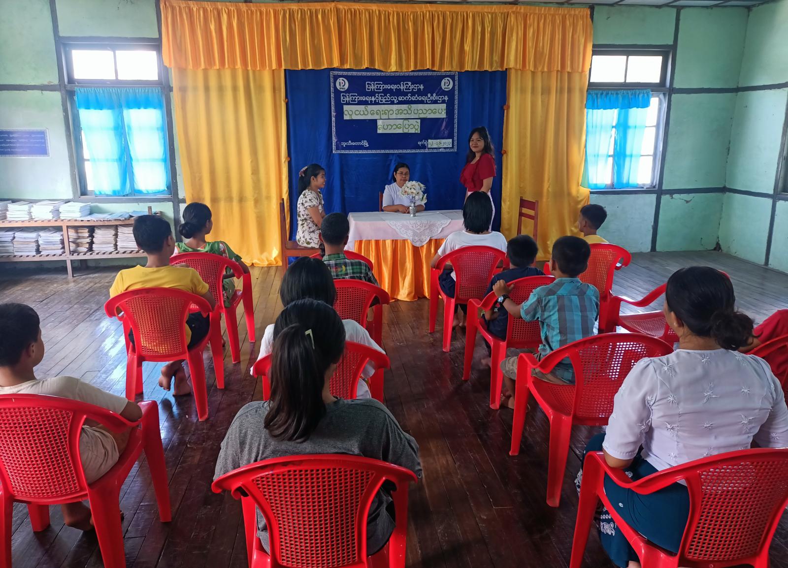 ရှေးဦးစွာ မြို့နယ်ပြန်ကြားရေးနှင့်ပြည်သူ့ဆက်ဆံရေးဦးစီးဌာနမှ ဒုတိယဦးစီးမှူး ဒေါ်ခင်စောမိုးက စာဖတ်ခြင်းအတတ် ပညာခေါင်းစဉ်ဖြင့် ဟောပြောခဲ့ရာ၌ ကျောင်းသား၊ ကျောင်းသူများအနေဖြင့် နောင်တစ်ချိန်တွင် နိုင်ငံနှင့်လူမျိုးအကျိုးအတွက် သယ်ပိုးထမ်းရွက် လာကြရမည်ဖြစ်ပြီး နိုင်ငံနှင့်လူမျိုးကို ချစ်မြတ်နိုးတတ်အောင်၊ တန်ဖိုးထားတတ်အောင် အသိပညာအတတ်ပညာများကို လေ့လာဆည်းပူးကြစေလိုပါကြောင်း ပြောကြားပြီး အ.လ.က (ခွဲ) မြို့သစ်ကျောင်းမှ ဆရာမ ဒေါ်မြတ်ပန်းဝေမှ ကျောင်းသား၊ ကျောင်းသူများ အနေဖြင့် ကျောင်းစာပညာရပ်များအပြင် ဘဝတိုးတက်ရေးအတွက် စာဖတ်ကြရန်လိုကြောင်း၊ စာဖတ်ခြင်းဖြင့် အသိပညာမြင့်မားလာမှသာ ဗလငါးတန်ဖွံ့ဖြိုးပြီး လူငယ်တို့၏ အနာဂတ်ဘဝ ပိုမိုမြင့်မားလာမည်ဖြစ်ကြောင်း၊ လက်ရှိ အောင်မြင်နေသူများမှာ စာဖတ်ကြသူများဖြစ်ပါကြောင်း၊ အောင်မြင်လိုပါက အချိန်ကိုစီမံခန့်ခွဲတတ်သူ ဖြစ်ရန်လိုပြီး အနာဂတ်အတွက် ရည်မှန်းချက်ထားရှိရမှာဖြစ်ကြောင်းပြောကြားပြီး အ.လ.က (ခွဲ) မြို့သစ်ကျောင်းမှ ဆရာမ ဒေါ်ခင်သန်းအေးက ကျောင်းသား၊ ကျောင်းသူများအနေဖြင့် အနာဂါတ် လူငယ်များဖြစ်သည့်အတွက် စိတ်ဓာတ်စည်းကမ်းကောင်းပြီး ရိုးသားကြိုးစား တရားမျှတမှုရှိကာ မေတ္တာတရားဖြင့် ညှာတာထောက်ထားတတ်သူများဖြစ်ရန် လိုအပ်ကြောင်း၊ လူငယ်များ အကျင့်စာရိတ္တ ကောင်းမွန်ရမည် ဖြစ်ပြီး၊ လူ့ပတ်ဝန်းကျင်နှင့် လိုက်လျောညီထွေနေတတ်စေလိုကြောင်းစသည်ဖြင့် လူငယ်များ ဘက်စုံဖွံ့ဖြိုးရေး ဆိုင်ရာများကို ဆွေးနွေးဟောပြောကြားခဲ့ကြောင်း သိရသည်။