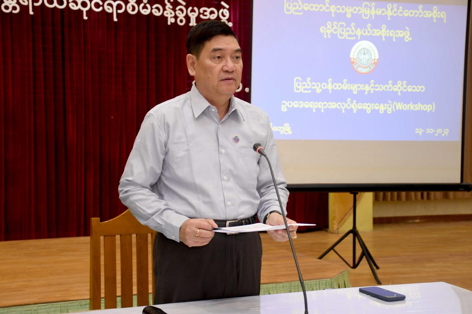 ဆက်လက်၍ ပြည်နယ်ဥပဒေချုပ် ဦးလှသိန်းက အလုပ်ရုံဆွေးနွေးပွဲပြုလုပ်ရခြင်းနှင့် စပ်လျဉ်း၍ ရှင်းလင်း ပြောကြားသည်။
