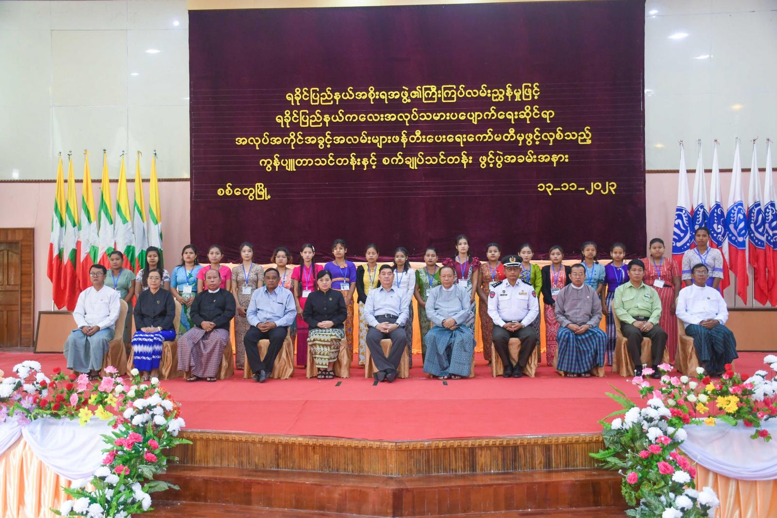 ပြည်နယ်အဆင့်ဌာနဆိုင်ရာများ၊ အရာထမ်းများနှင့်သက်ဆိုင်သော ဥပဒေရေးရာအလုပ်ရုံ ဆွေးနွေးပွဲကို နှစ်ရက်ကြာကျင်းပသွားမည်ဖြစ်ပြီး ပြည်နယ်အဆင့်ဌာနဆိုင်ရာများ၊ အရာထမ်းများ ၁၃၀ ဦးတက်ရောက်ကြောင်းသိရသည်။