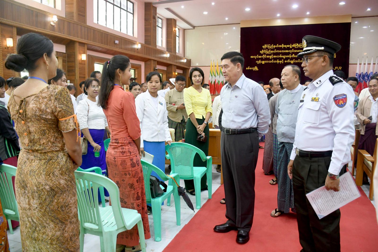 ထို့နောက် ပြည်နယ်လူမှုရေးရာဝန်ကြီး ဦးစောနိုင်က သင်တန်းဖွင့်လှစ်ရခြင်းနှင့်ပတ်သက်၍ ရှင်းလင်းတင်ပြပြီး သင်တန်းသား၊ သင်တန်းသူများနှင့် စုပေါင်းမှတ်တမ်းတင်ဓာတ်ပုံရိုက်ကူးကြကာ ပြည်နယ်ဝန်ကြီးချုပ်နှင့် တာဝန်ရှိသူများက သင်တန်းသား၊ သင်တန်းသူများအား ရင်းရင်းနှီးနှီးတွေ့ ဆုံနှုတ်ဆက်ကြသည်။