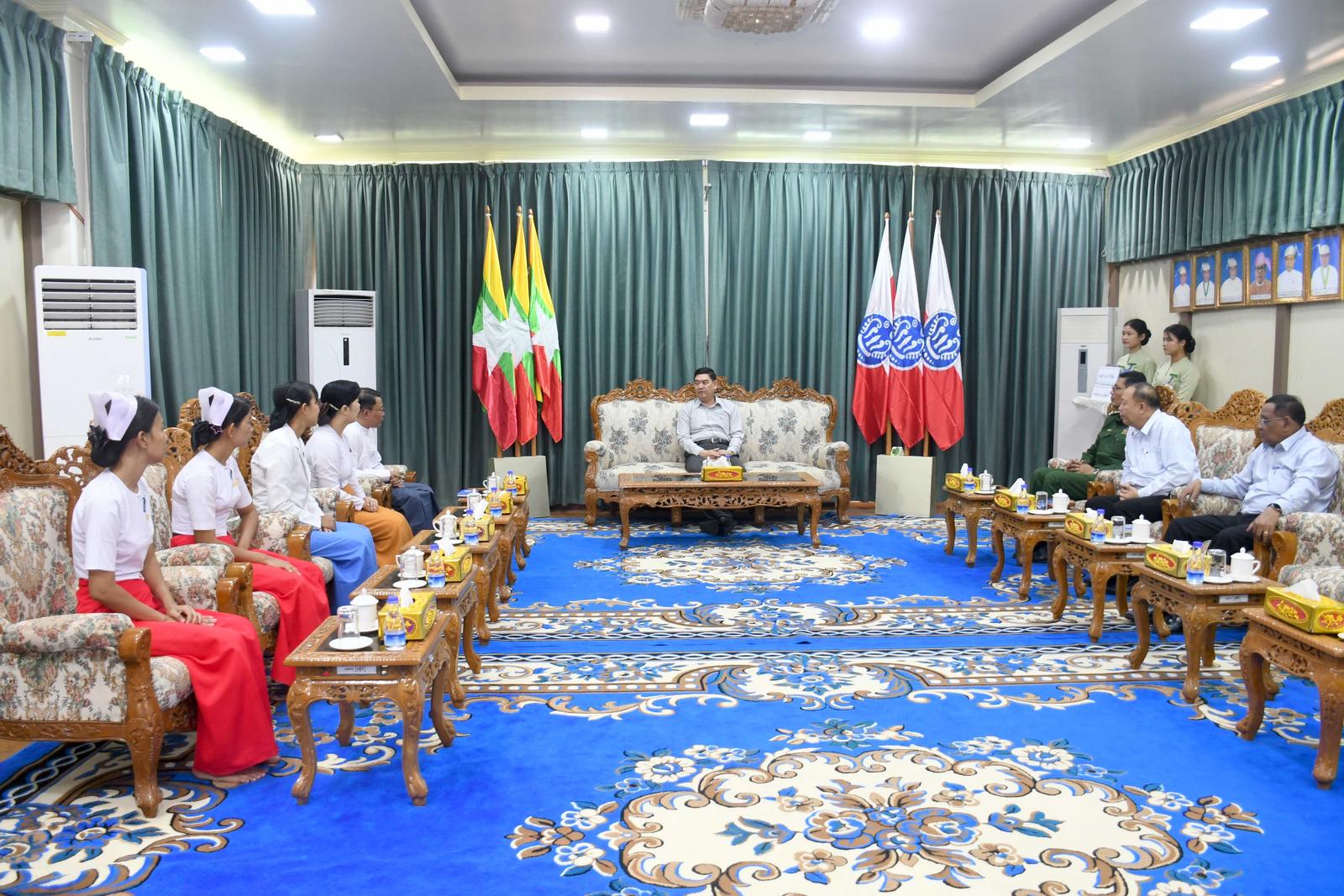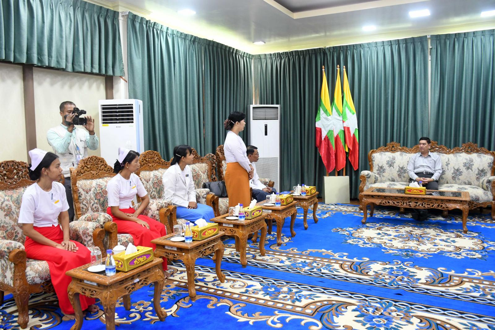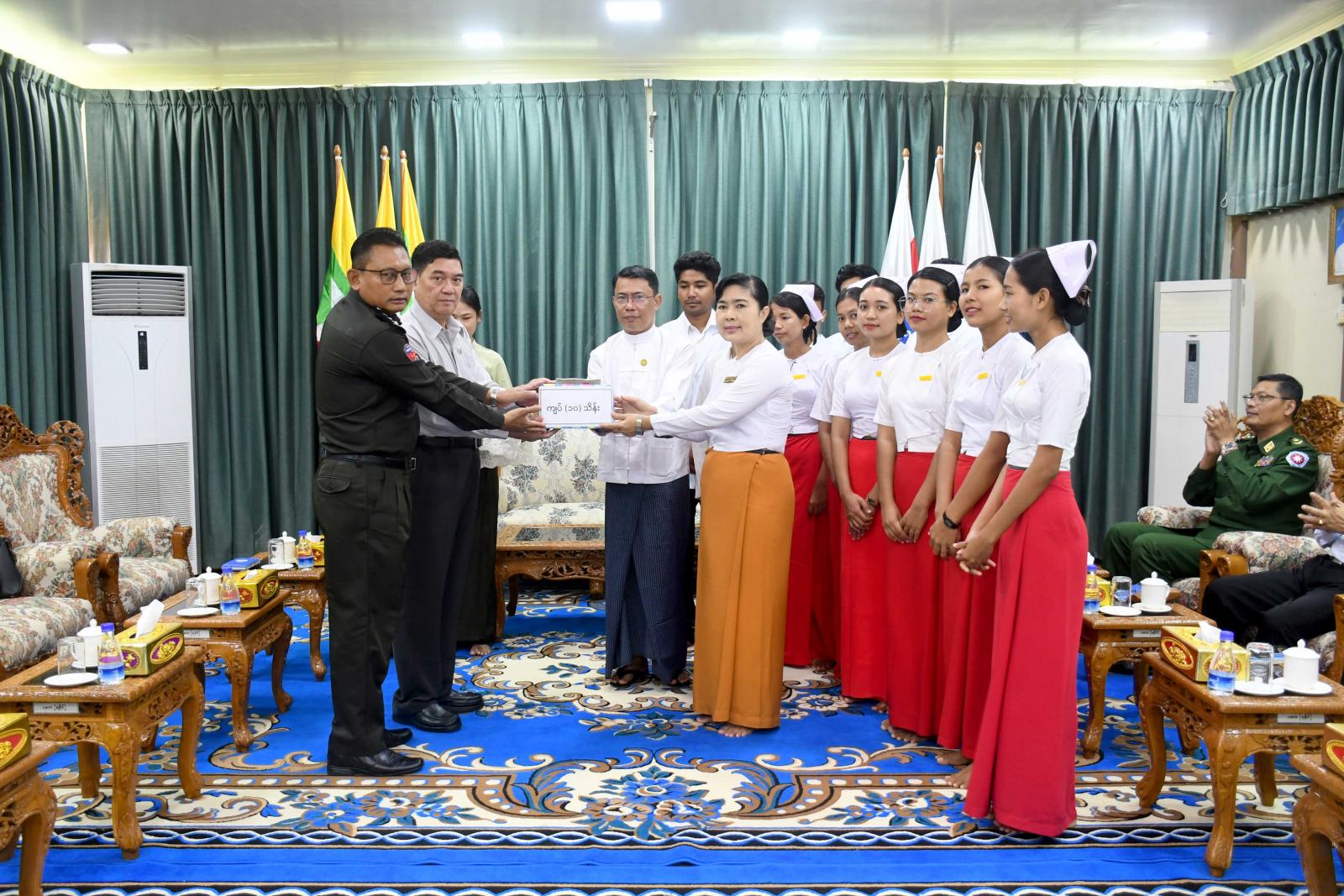တင်ပြချက်များအပေါ် ပြည်နယ်ဝန်ကြီးချုပ်က လိုအပ်သည်များကို မှာကြားပြီး ပြည်နယ်အစိုးရအဖွဲ့မှ သူနာပြုနှင့်သားဖွား သင်တန်းကျောင်းသို့ ထောက်ပံ့သည့် ဆန်အိတ်(၁၀၀)နှင့် ငွေကျပ်(၁၀)သိန်းကို ပေးအပ်ရာ ကျောင်းအုပ်ဆရာမကြီးနှင့် သင်တန်းသား၊ သင်တန်းသူများက လက်ခံရယူကြကြောင်း သိရသည်။