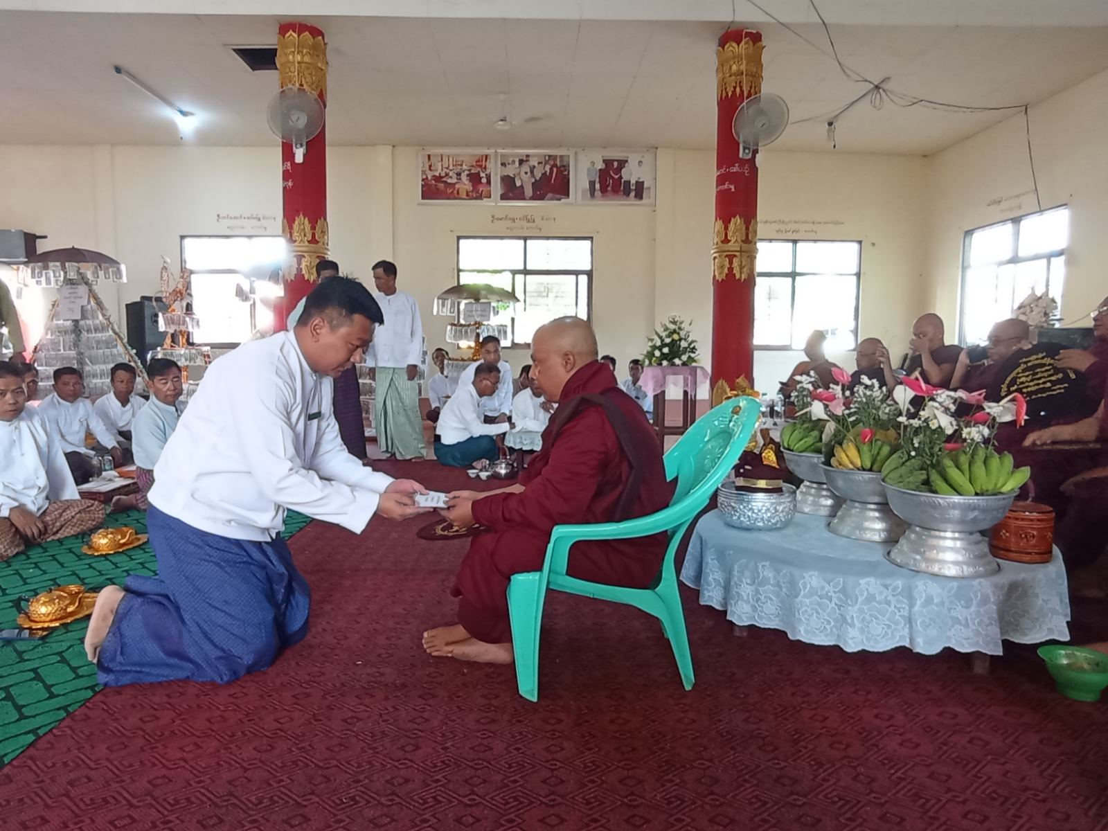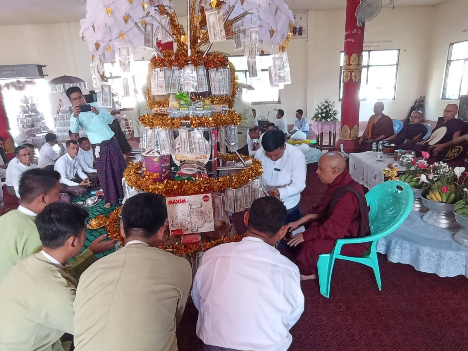 ရခိုင်ပြည်နယ်၊ သံတွဲခရိုင်၊ ဂွမြို့၌ မြို့နယ်စီမံအုပ်ချုပ်ရေးအဖွဲ့နှင့် မြို့နယ်ဌာနဆိုင်ရာများ စုပေါင်း၍ (၂၅)ကြိမ်မြောက် ဌာနပေါင်းစုံ စုပေါင်းမဟာဘုံကထိန်ပွဲတော် မင်္ဂလာအခမ်းအနား ဆက်ကပ်လှူဒါန်းခြင်းကို ယနေ့နံနက် (၈) နာရီအချိန်က သိမ်ကုန်းဘုရားဝန်းအတွင်းရှိ သာသနာ့ ဗိမ္မာန်တော်ကြီးအတွင်း၌ ကျင်းပပြုလုပ်ခဲ့သည်။