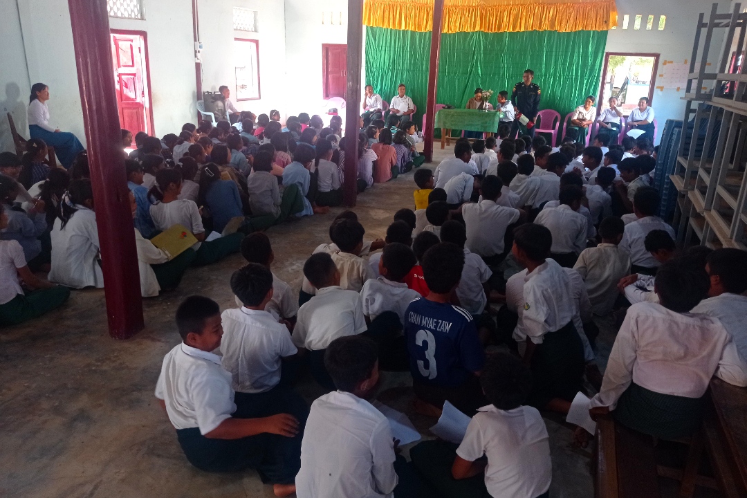 အခမ်းအနားတွင် ကျောင်းအုပ်ဆရာကြီး ဦးစိုးမင်းထွန်းက အဖွင့်အမှာစကားပြောကြားပြီး၊ မင်းဘူးခရိုင် ပြန်ကြားရေးနှင့်ပြည်သူ့ဆက်ဆံရေးဦးစီးဌာနမှ ဦးစီးအရာရှိ ဒေါ်ခင်ဝါဝါလှိုင်က ကျောင်းသား၊ ကျောင်းသူလေးများအား ကျောင်းစာများအပြင် ပြင်ပ ဗဟုသုတရရှိစေမည့် သုတရသစာပေများကိုလည်း များများဖတ်ကြရန်နှင့် စာဖတ်ခြင်းကြောင့် ဉာဏ်ရည်၊ ဥာဏ်သွေးများ မြင့်မားကာ အကျိုးအကြောင်း အဆိုးအကောင်းနှင့် အမှားအမှန်ကို ဝေဖန်ပိုင်းခြားနိုင်သော ပညာတတ် လူရည်လူမွန်များ ဖြစ်လာကြမှာ ဖြစ်ကြောင်းတို့ကိုပြောကြားပြီး၊ မြို့နယ်စားသုံးသူရေးရာဦးစီးဌာန၊ မြို့နယ်မီးသတ်တပ်ဖွဲ့တို့မှ တာဝန်ရှိသူများက မိမိတို့၏ ဌာနအလိုက် အသိပညာပေးကဏ္ဍများကို အသီးသီးဟောပြော ဆွေးနွေးခဲ့ကြကြောင်း သိရသည်။