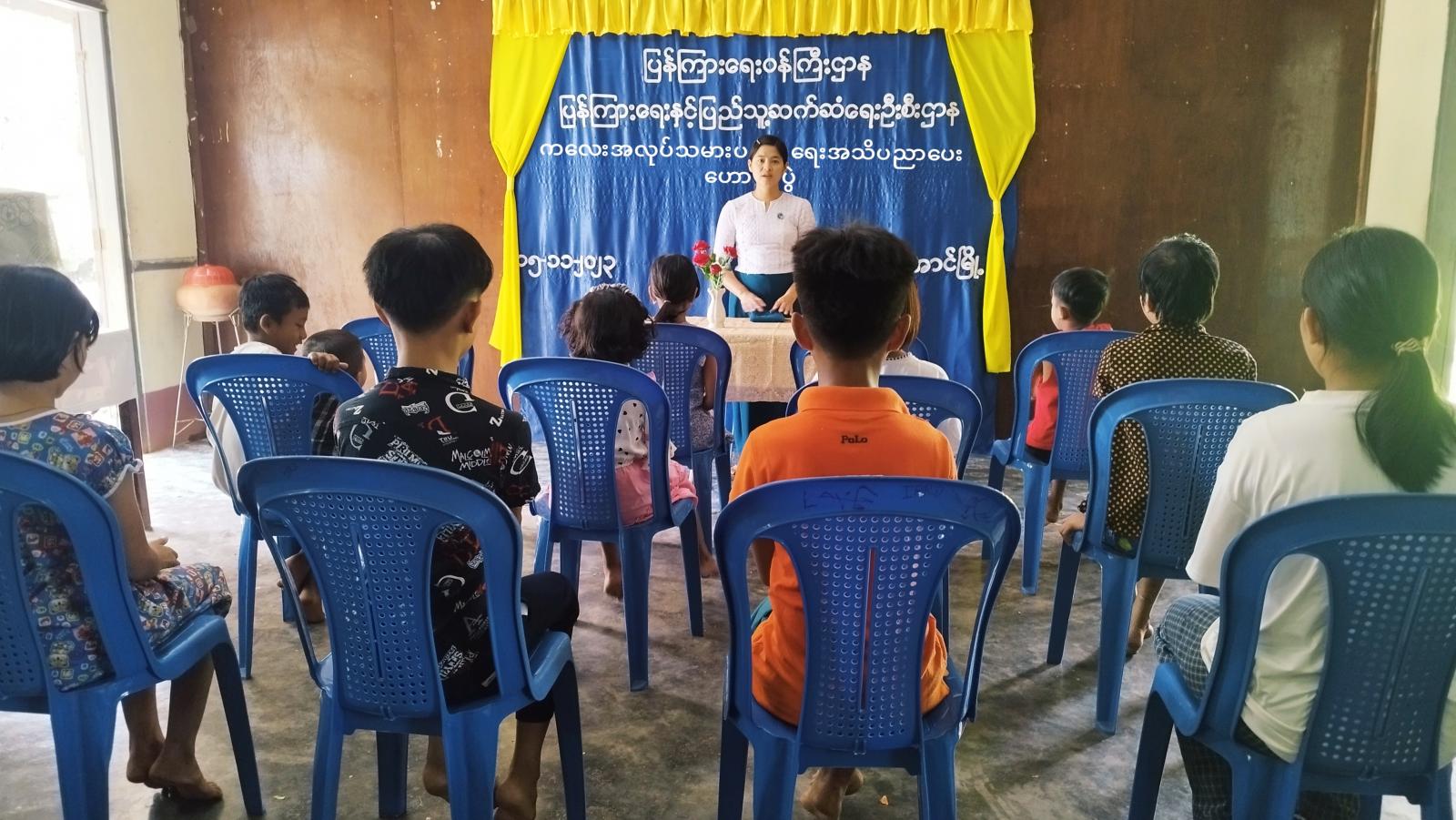 ဟောပြောပွဲတွင် ပြန်ကြားရေးနှင့်ပြည်သူ့ဆက်ဆံရေးဦးစီးဌာနမှ ဒုတိယဦးစီးမှူး ဒေါ်ခင်ခင်လဲ့က ကျောင်းသား/သူများ၊ လူငယ်လူရွယ်များအား ကလေးအလုပ်သမားပပျောက်ရေးနှင့် ပတ်သက်၍ ပြည်သူများ သိရှိနိုင်ရန် ဥပဒေနှင့် ပြစ်မှု/ပြစ်ဒဏ်များ၊ မြန်မာနိုင်ငံတွင် ကလေးများအတွက် အကာအကွယ်ပေးထားသည့် ဥပဒေများ၊ ကလေးသူငယ်အခွင့်အရေးဆိုင်ရာဥပဒေများ၊ အလုပ်ရုံးများ၌ ကလေးအလုပ်သမားများ၏ အလုပ်အချိန် သတ်မှတ်ထားမှုများ၊ ကလေးအလုပ်သမားများကို ဥပဒေမဲ့ အလုပ်ခိုင်းစေခြင်းဖြင့် ချမှတ်နိုင်သည့် ဥပဒေများ၊ ကလေးအလုပ်သမားများသည် အလုပ်ခွင်၌ အချိန်ပြည့်နီးပါး အလုပ်လုပ်ကြရသဖြင့် စိတ်ပိုင်း၊ ရုပ်ပိုင်းဆိုင်ရာနာကျင်မှုများ မလွဲမသွေခံစားကြရမည်ဖြစ်ကြောင်း၊ ကလေးအလုပ်သမားနှင့် ပတ်သက်၍ ကာကွယ်ပေးထားသည့် ဥပဒေများရှိကြောင်း ရှင်းလင်းပြောကြားခဲ့သည်။