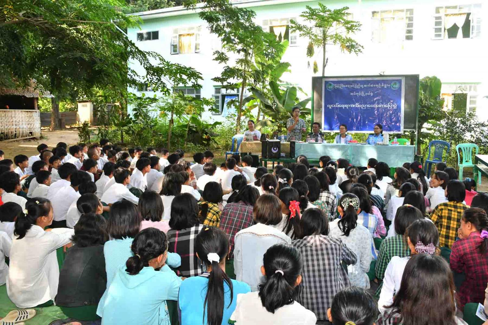 ပြည်ထောင်စုနယ်မြေ၊ နေပြည်တော်ဥတ္တရခရိုင်၊ တပ်ကုန်းမြို့နယ် အနော်ရထာရပ်ကွက် အခြေခံပညာအလယ်တန်းကျောင်း(နောင်သင်္ခါ)တွင် ကျောင်းသား၊ ကျောင်းသူများ ပြင်ပအသိပညာဗဟုသုတများ ပိုမိုရရှိစေရန်ရည်ရွယ်၍ ပြန်ကြားရေးနှင့်ပြည်သူ့ဆက်ဆံရေးဦးစီးဌာနက ဦးဆောင်ကျင်းပသည့် လူငယ်ရေးရာ အသိပညာပေးဟောပြောပွဲကို ယမန်နေ့ မွန်းလွဲ ၂ နာရီက အဆိုပါကျောင်းတွင် ကျင်းပခဲ့သည်။
