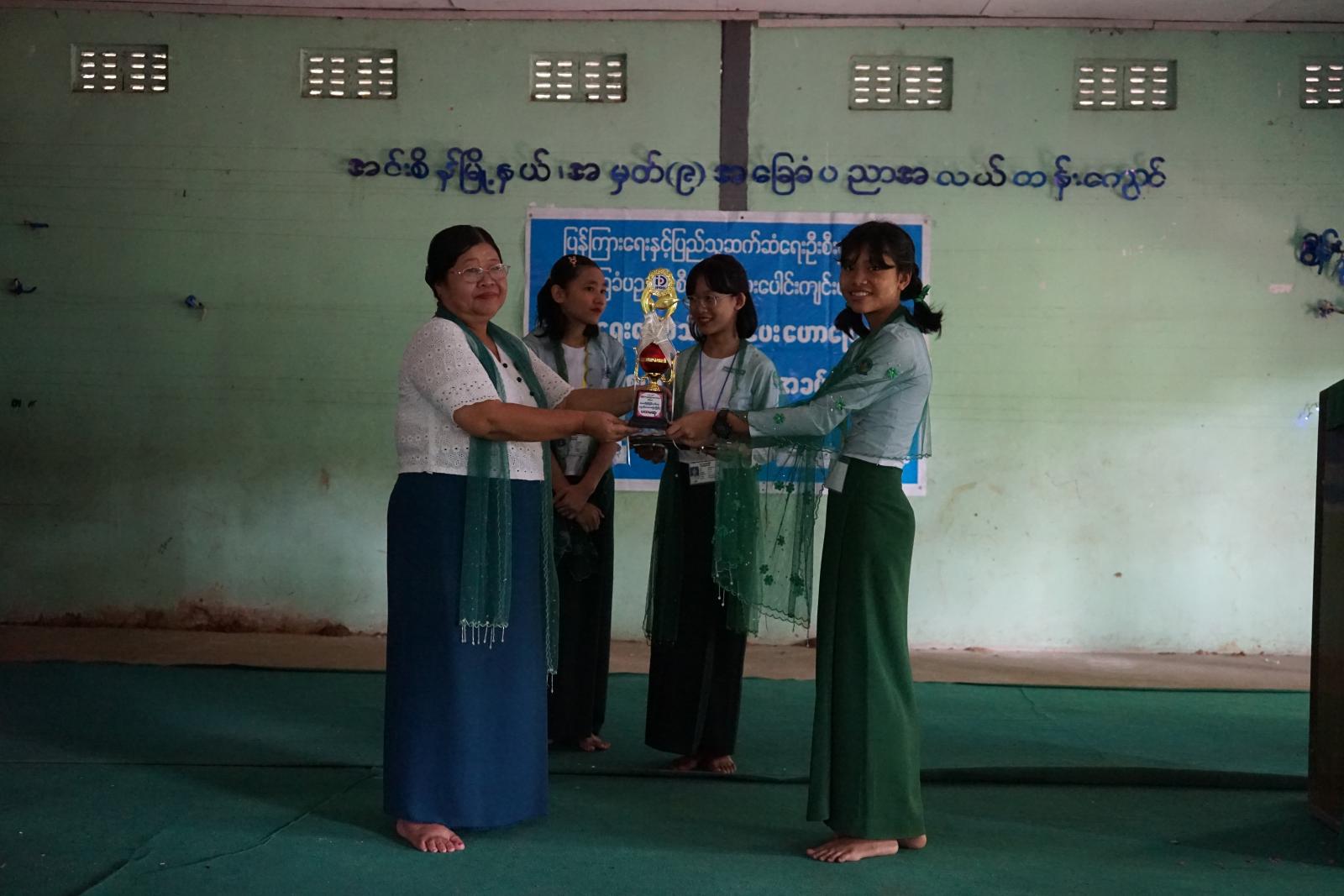 ယင်းနောက် ကျပန်းစကားပြောပြိုင်ပွဲတွင် ပထမဆု၊ ဒုတိယဆု၊ တတိယဆုနှင့် အထူးဆု ရရှိခဲ့ကြသော ကျောင်းသား၊ ကျောင်းသူများကို တာဝန်ရှိသူများက ဆုများအသီးသီး ပေးအပ် ချီးမြှင့်ခဲ့ကြပြီး ပြန်ကြားရေးနှင့်ပြည်သူ့ဆက်ဆံရေးဦးစီးဌာန၊ ရန်ကုန်မြောက်ပိုင်းခရိုင်(အင်းစိန်)ရုံးမှ ပြသထားသည့် စာအုပ်ပြပွဲနှင့်နံရံကပ်စာစောင်များအား ကျောင်းသား၊ ကျောင်းသူများက စိတ်ပါဝင်စားစွာဖြင့် လှည့်လည်ကြည့်ရှုခဲ့ကြသည်။