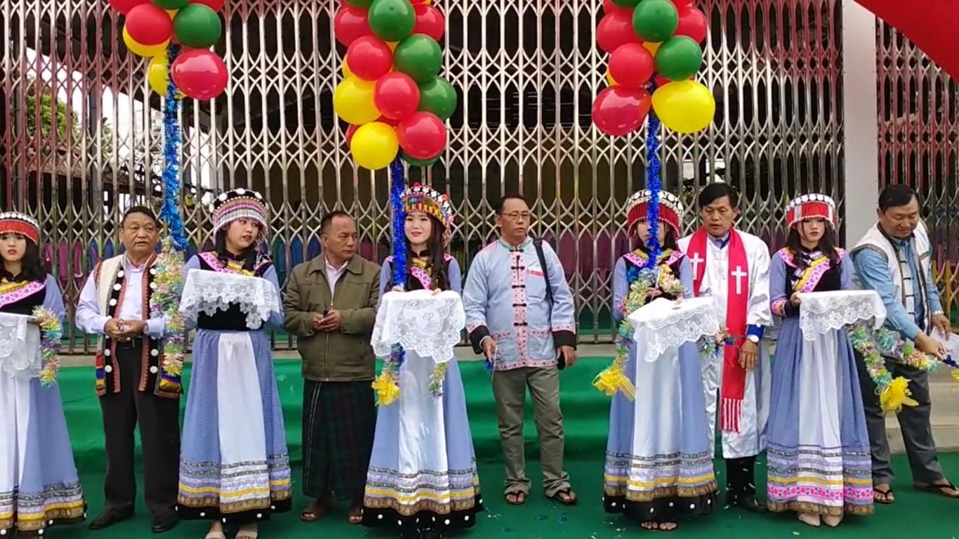 ထို့နောက် တာဝန်ရှိသူများ ဦးဆောင်၍ ဘုရားဝတ်ပြုအစီအစဉ်အဖြစ် သိက္ခာတော်ရ ဆရာမတ်ခူးမှ ခရစ်တော်ထံ ဆက်ကပ်ဆုတောင်း၍ တက်ရောက်လာသူများက ဓမ္မတေးသီချင်းသီဆိုကြပြီး သိက္ခာတော်ရဆရာ တီးတိုးမှ ဒေသနာတော်အား ဟောကြားတော်မူကာ တာဝန်ရှိသူ များက ခန်းမဆောင် ဖြစ်မြောက်ရေးတွင် ပူးပေါင်းကူညီဆောင်ရွက်ကြသူများအား အမှတ်တရလက်ဆောင်များ ပေးအပ်ခဲ့ကြသည်။
