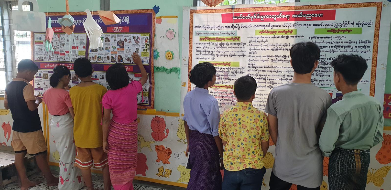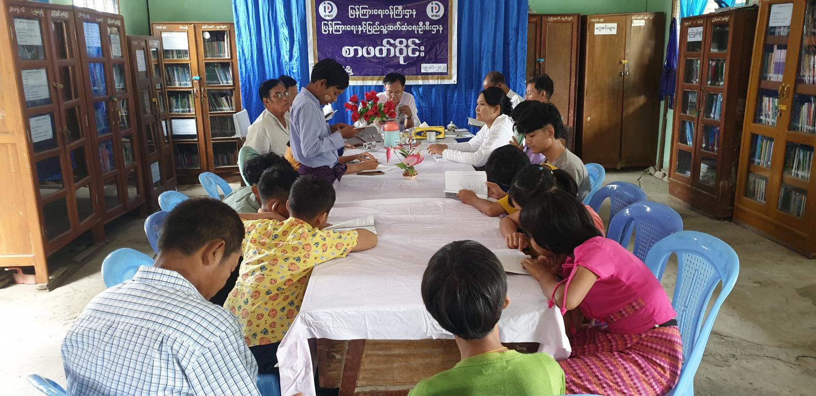 ထို့နောက် စာဖတ်ဝိုင်းတွင်ပါဝင်ဆွေးနွေးသည့် ကျောင်းသား၊ ကျောင်းသူ၊ လူငယ်များက စာကြည့်တိုက်၌ ခင်းကျင်းပြသထားသောစာအုပ်စာစောင်များ၊ သဘာဝဘေးအန္တရာယ်ကြိုတင်သတိရှိကြပါစို့ အသိပညာပေးနံရံကပ်စာစောင်နှင့် သက်ငယ်မုဒိမ်းမှုကာကွယ်ရေးအသိပညာပေးနံရံကပ်စာစောင်များကို ကြည့်ရှုလေ့လာကြသည်။