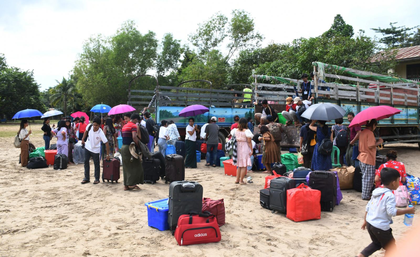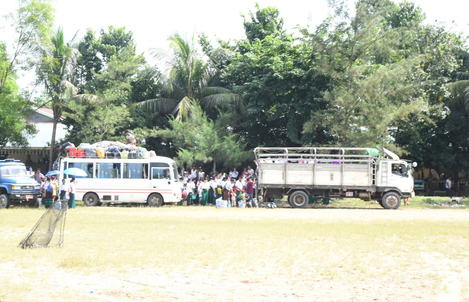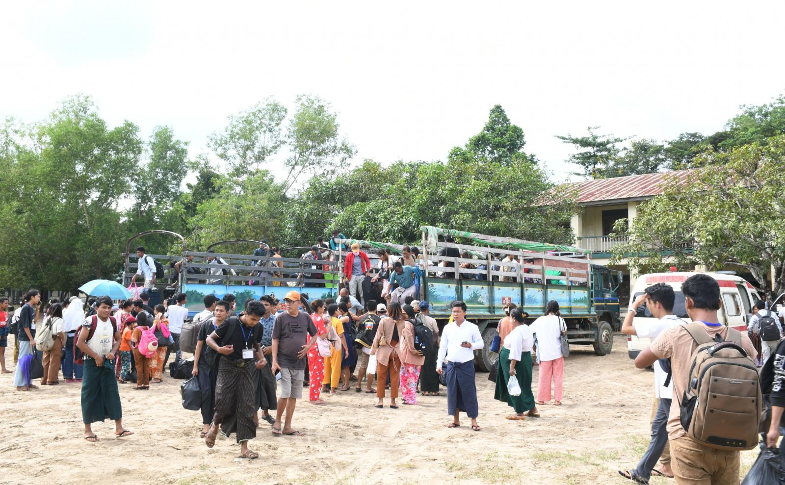 စစ်တွေမြို့မှ ဘူးသီးတောင်မြို့သို့ ရခိုင်ပြည်နယ်အစိုးရအဖွဲ့အစီအစဉ်ဖြင့် ရောက်ရှိနေသည့် ပညာရေးဝန်ထမ်းများနှင့် မိသားစုဝင်များ ၊ ကျန်းမာရေးဌာနမှ ဝန်ထမ်းများ ၊ စစ်တွေတက္ကသိုလ်မှ အဝေးသင်ကျောင်းသား၊ ကျောင်းသူများ ၊ အခြားအစိုးရဝန်ထမ်းများသည် ခရိုင်/မြို့နယ် စီမံအုပ်ချုပ်ရေး အဖွဲ့မှ ကြီးကြပ်မှုဖြင့် ဘူးသီးတောင်မြို့မှ မောင်တောမြို့သို့ နို၀င်ဘာ၂၀ ရက်နေ့ နံနက် ၁၁ နာရီ ၂၅ မိနစ် အချိန်ခန့်က အမှတ် ၁ အခြေခံပညာအထက်တန်းကျောင်းသို့ မော်တော်ယာဉ်များဖြင့် ပြန်လည်ရောက်ရှိလာကြရာ တာဝန်ရှိသူများက ကြိုဆိုလက်ခံခဲ့ကြသည်။