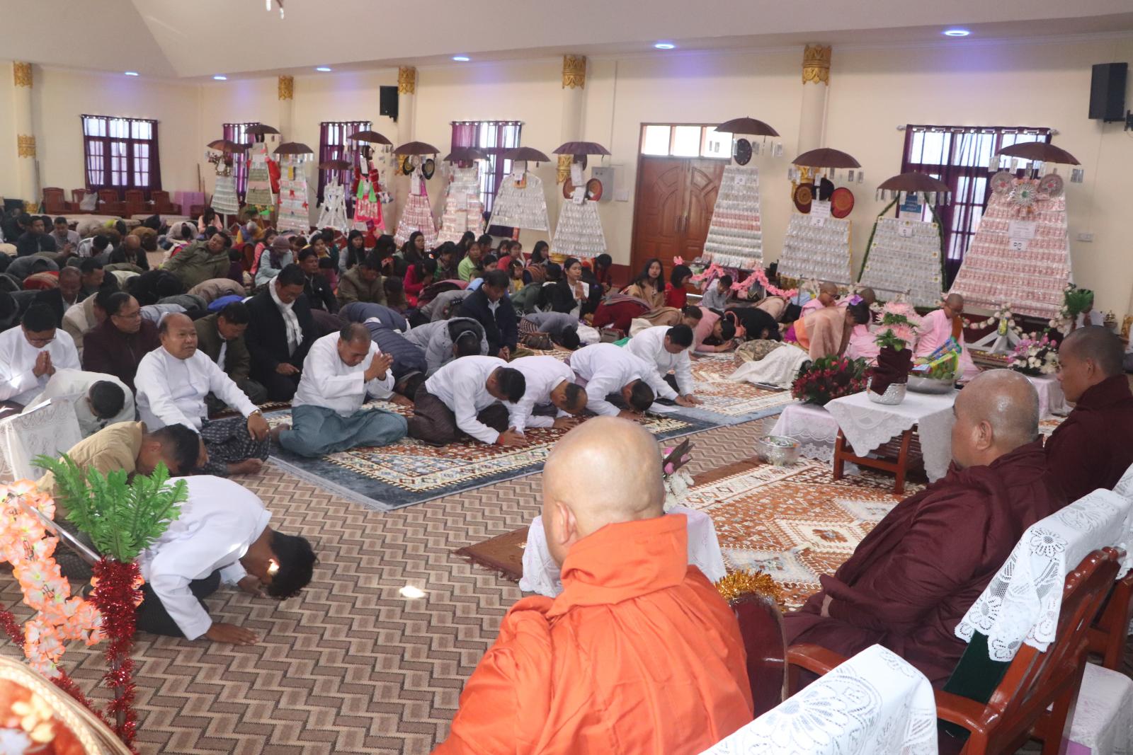 ရှေးဦးစွာ အခမ်းအနားကို နမောတဿ သုံးကြိမ်ရွတ်ဆို ဘုရားကန်တော့ဖွင့်လှစ်ပြီး ဟားခါးမြို့နှင့် ထန်တလန်မြို့နယ် သံဃနာယကအဖွဲ့ဥက္ကဋ္ဌ၊ ဟားခါးမြို့၊ ကျောဘုတ်သာသနာပြု ကျောင်းဆရာတော် ဘဒ္ဒန္တပညောဘာသ (အဂ္ဂမဟာသဒ္ဒမ္မဇောတိကဓဇ) အရှင်သူမြတ်ထံမှ ဧည့်ပရိသတ် အပေါင်းက ငါးပါးသီလ ခံယူဆောက်တည်၍ သံဃာတော်အရှင်သူမြတ်များ ရွတ်ပွားသရဇ္ဇျာယ် ချီးမြှင့်တော်မူသော မေတ္တာသုတ်ပရိတ်တရားတော်များကို နာယူကြည်ညိုကြသည်။