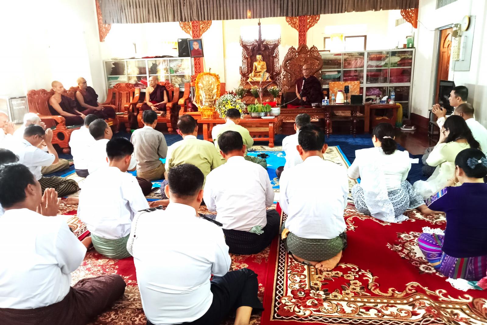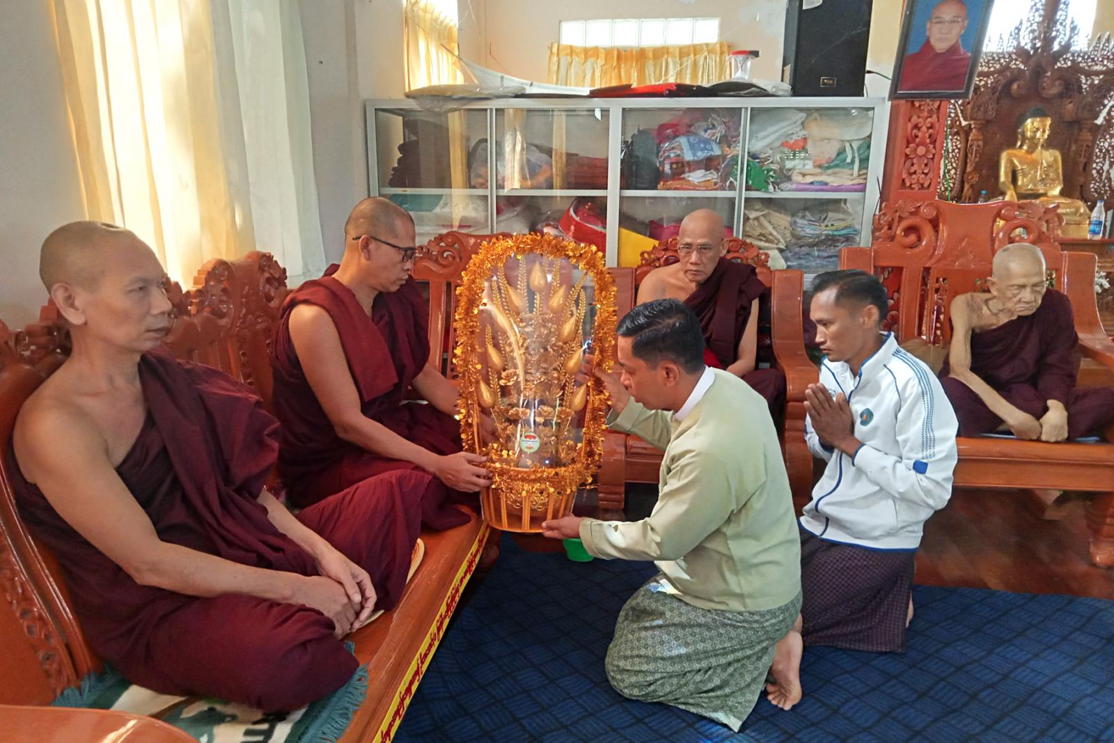 ရခိုင်ပြည်နယ်၊ သံတွဲခရိုင်စီမံအုပ်ချုပ်ရေးအဖွဲ့မှကြီးမှုကျင်းပသည့် (၄၄) ကြိမ်မြောက်၊ ခရိုင်၊ မြို့နယ် ဌာနပေါင်းစုံဝန်ထမ်းများနှင့် စေတနာရှင်အလှုရှင်များ၏ စုပေါင်းမဟာဘုံကထိန်လျာသင်္ကန်း ဆက်ကပ်လှူဒါန်းပွဲတော်ကို ယနေ့နံနက် ၉ နာရီက သီရိမင်္ဂလာမြို့ ဦးတောင်ကျောင်း၌ ကျင်းပပြုလုပ်ရာ သံတွဲခရိုင်စီမံအုပ်ချုပ်ရေးအဖွဲ့ဥက္ကဋ္ဌ ဦးမျိုးချစ်နှင့်အဖွဲ့ဝင်များ မြို့နယ်စီမံအုပ်ချုပ်ရေးအဖွဲ့ဥက္ကဋ္ဌ ဦးမောင်သာစိန်နှင့်အဖွဲ့ဝင်များ ခရိုင်အဆင့်၊ မြို့နယ်အဆင့် ဌာနဆိုရာများနှင့်ဝန်ထမ်းများ တက်ရောက်ကြသည်။