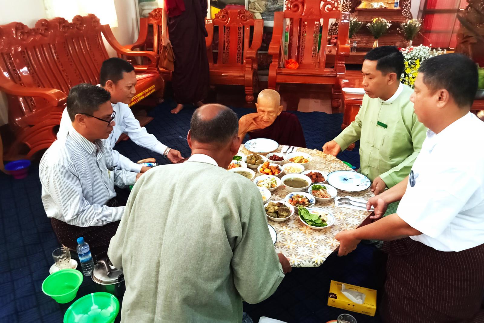 အခမ်းအနားအပြီးတွင် ဆရာတော်သံဃာတော်များအား နေ့ဆွမ်းဆက်ကပ်လှူဒါန်းခဲ့ကြပြီး ဧည့်ပရိတ်သတ်များအား နေ့လယ်စာဖြင့် တည်ခင်းဧည့်ခံကျွေးမွေးခဲ့ကြသည်။