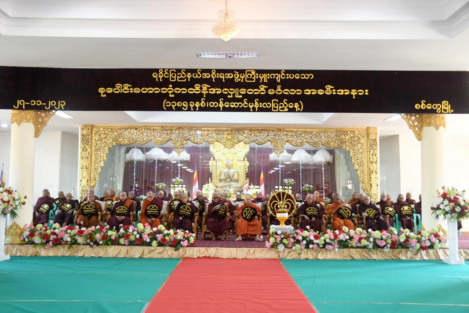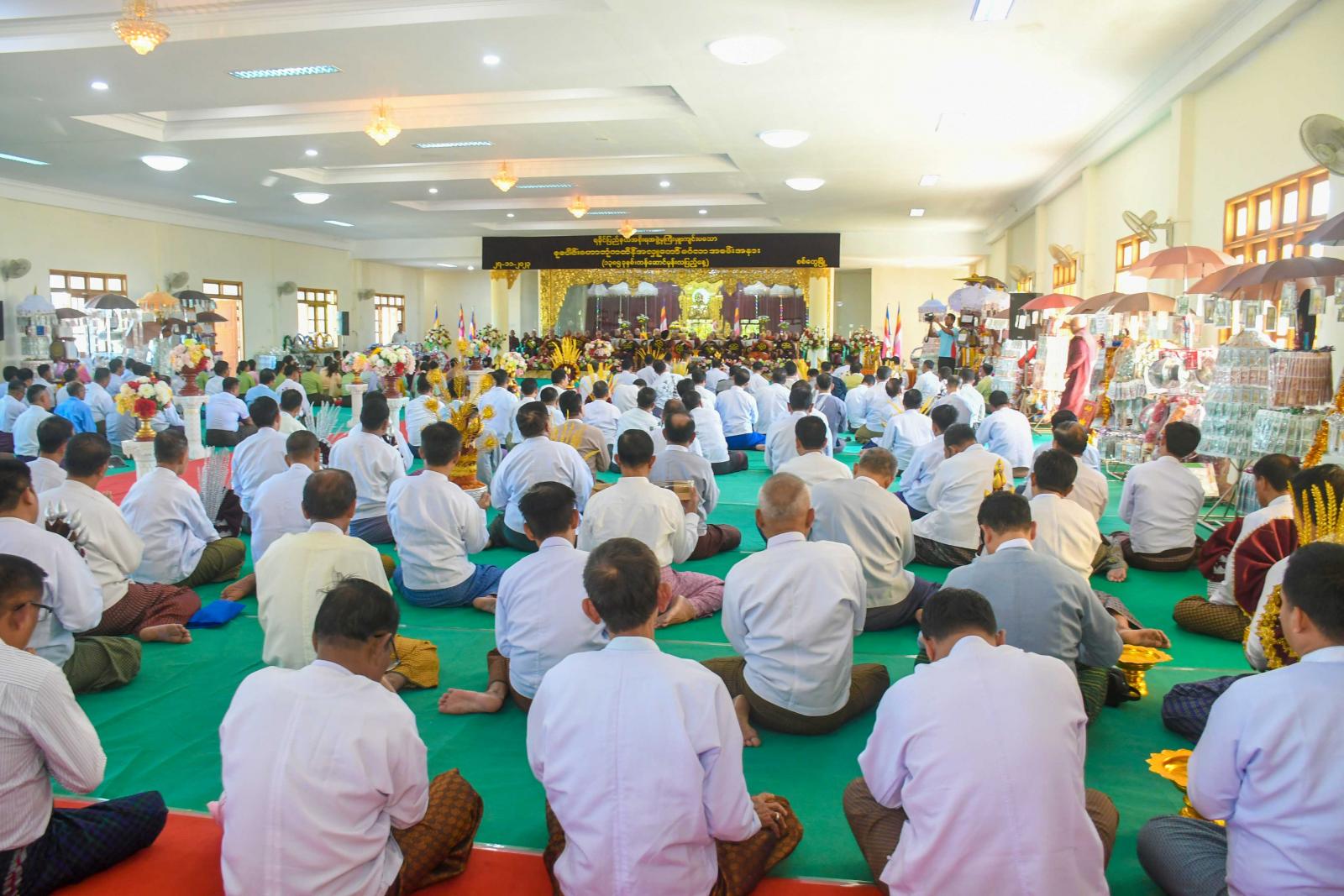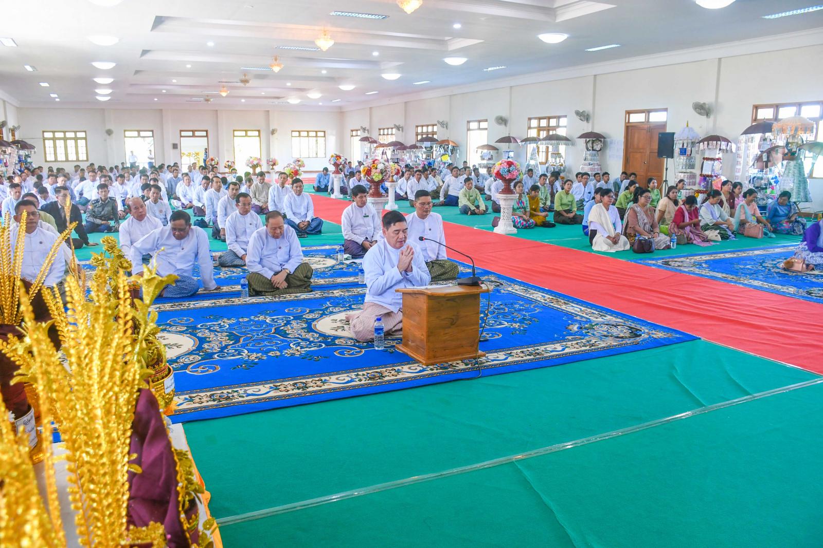 ဦးစွာ အခမ်းအနားကို ဆရာတော်သံဃာတော်များနှင့် ပြည်နယ်ဝန်ကြီးချုပ် အမှူးပြုသော ဧည့်ပရိသတ်များက နမောတဿ သုံးကြိမ်ရွတ်ဆိုပြီး ဖွင့်လှစ်ကြသည်။ ထို့နောက် ပြည်နယ်ဩဝါဒါ စရိယ၊ အဂ္ဂမဟာပဏ္ဍိတ၊ အဂ္ဂမဟာဂန္ထဝါစကပဏ္ဍိတ၊ စစ်တွေမြို့၊ နန္ဒာရာမပရိယတ္တိစာသင်တိုက် ဆရာတော် ဘဒ္ဒန္တနန္ဒသိရီမဟာထေရ်မြတ်ထံမှ ပြည်နယ်ဝန်ကြီးချုပ် အမှူးပြုသော ဧည့်ပရိတ်သတ်များက ငါးပါးသီလ ခံယူဆောက်တည်ကြပြီး သံဃာတော် အရှင်သူမြတ်များက မေတ္တာသုတ်ပရိတ် တရားတော်များ ရွတ်ပွားချီးမြှင့်တော်မူကြသည်။